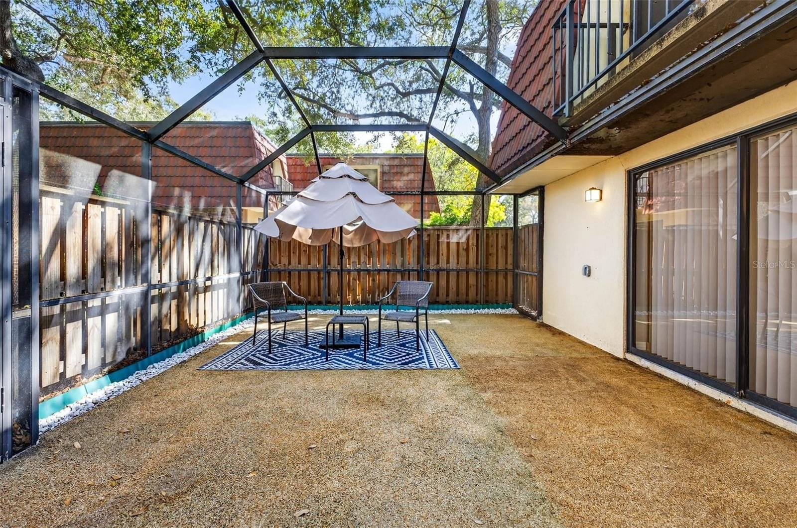 Upon arrival, you are welcomed through a private gate into a spacious and inviting outdoor living area, featuring a large screened-in patio ideal for relaxing, entertaining, or enjoying Florida’s year-round sunshine. This outdoor space creates a seamless extension of the home and sets the stage for comfortable indoor-outdoor living.