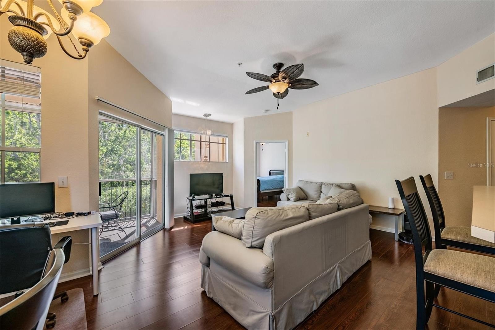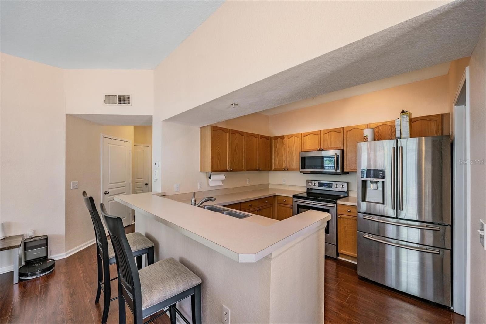 Welcome home in New Tampa, FL! This 1 bedroom, 1 bathroom condominium offers a cozy, yet functional layout in the HIGHLY desirable gated condo community of Oxford Place at Tampa Palms. Whether utilizing the stainless steel appliances, making meal prep a breeze, or sitting in your screened in lanai, overlooking your second story balcony to the peaceful conservation area below, the condo comes tastefully furnished throughout, allowing you to feel at home, and at ease, as soon as you turn the key to the front door. The "Jack and Jill" bathroom maximizes efficiency, providing a door for both guests when entertaining, and a separate entrance for the tenant directly off the primary bedroom. The condo boasts both an oversized entry closet, large enough to secure your bicycle, and/or to store other important items in your life. Directly off the kitchen is another closet, complete with a high-efficiency washer and dryer, which allows you do your laundry from the comfort of your own home.