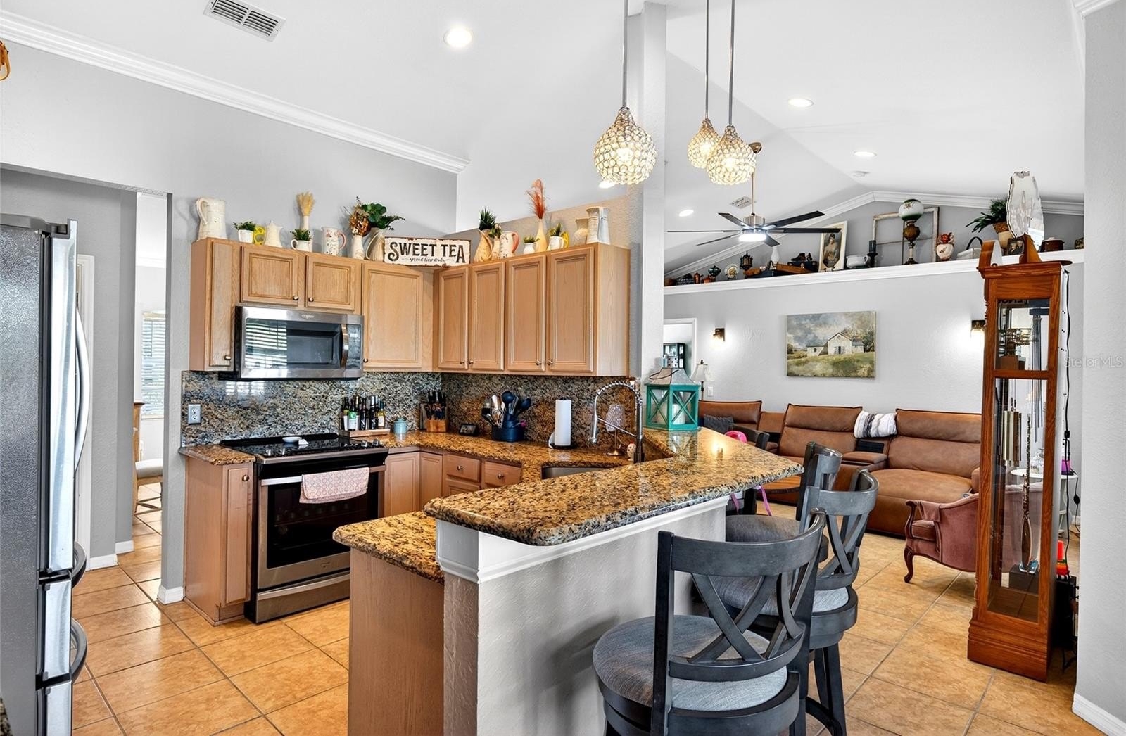 -----INTERIOR FEATURES: Huge kitchen with granite counter tops, pantry, tons of storage & all stainless steel appliances. HUGE Master suite with walk in His & hers closets, walk-in shower & double sinks. Laundry room. Wood laminate in bedrooms, tile throughout the rest of the home. -----