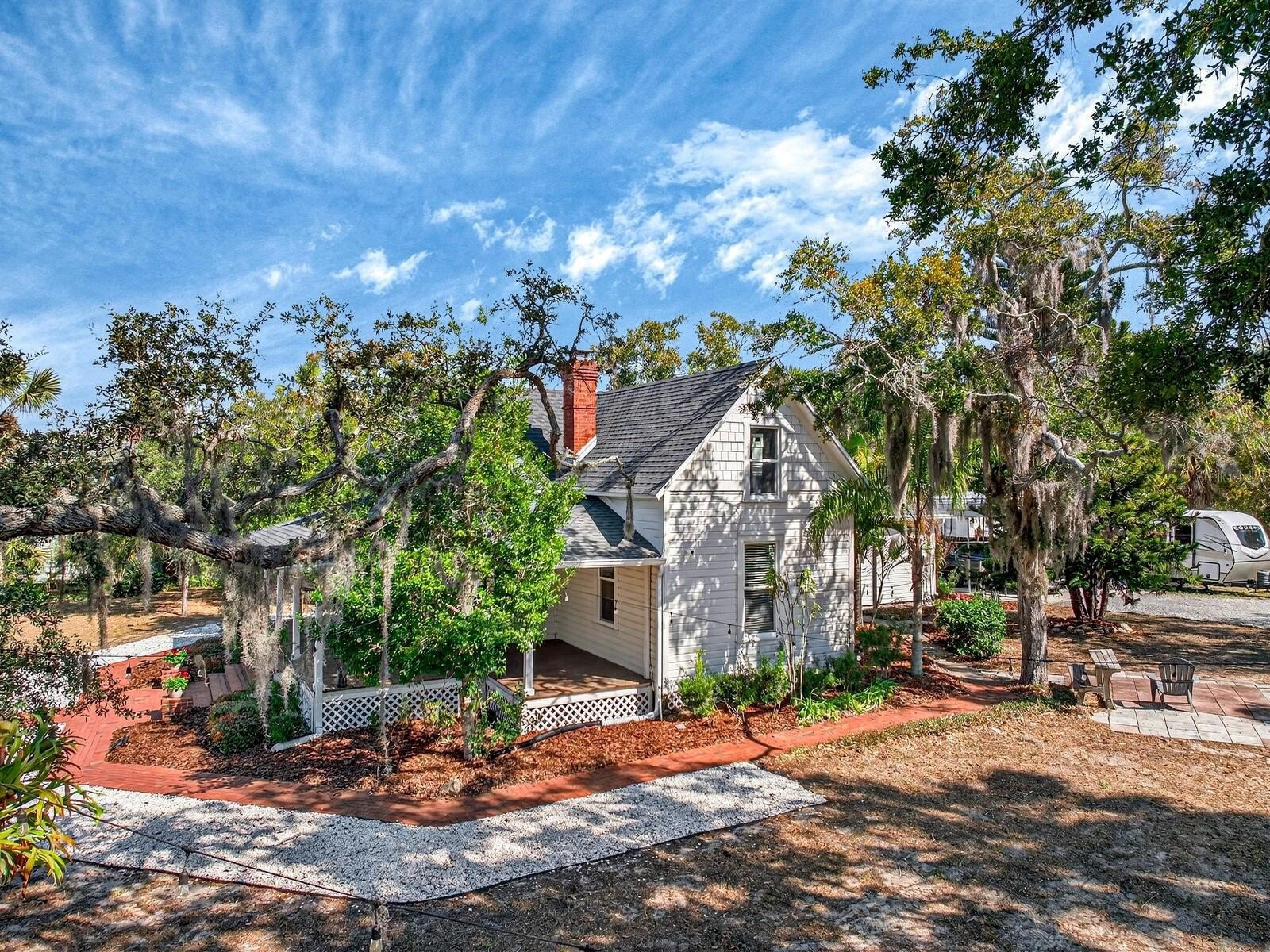 Welcome home to this enchanting storybook Craftsman set on an extraordinary .93-acre lot in the heart of Tarpon Springs—just steps from charming downtown shops, local restaurants, and year-round community events. With nearly an acre to call your own, this unique property offers space, character, and a location that simply cannot be duplicated. Begin your mornings on the welcoming front porch, coffee in hand, enjoying cool Gulf breezes beneath a canopy of mature trees. Inside, beautifully restored original heart of pine floors showcases the home’s rich heritage, adding warmth and timeless charm while blending seamlessly with thoughtful modern updates. The spacious, updated eat-in kitchen is truly the heart of the home, featuring granite countertops, stainless steel appliances, abundant cabinetry, and generous prep space, perfect for holiday gatherings, dinner parties, or relaxed weeknight meals. The first floor offers multiple inviting living spaces, including a cozy family room with a wood-burning fireplace, formal living and dining rooms, and a main-level primary suite complete with a delightful retro bath showcasing a cast-iron clawfoot tub/shower combination. Upstairs, three additional bedrooms and a full bath provide flexibility for family, guests, or a creative workspace. Recent improvements provide peace of mind and long-term value, including foundation repair and leveling with new concrete piers (with warranty), new retaining wall across the entire front of the property, exterior paint, siding repairs and skirting, a fully restored stairwell, newer windows, newer roof, downstairs A/C replaced in 2025, and new water heater and plumbing updates. The oversized yard invites backyard barbecues, gardening, playtime, or simply soaking up the Florida sunshine, an uncommon opportunity to enjoy nearly an acre in such a walkable location. Just moments from Spring Bayou, home of the annual Epiphany celebration and beloved art festivals, historic downtown, the iconic Tarpon Springs Sponge Docks, and only two blocks from the Pinellas Trail, this home truly offers the best of lifestyle and location. Nearly an acre. Historic charm. Walkable convenience. This is the one you’ve been waiting for….schedule your private showing today.