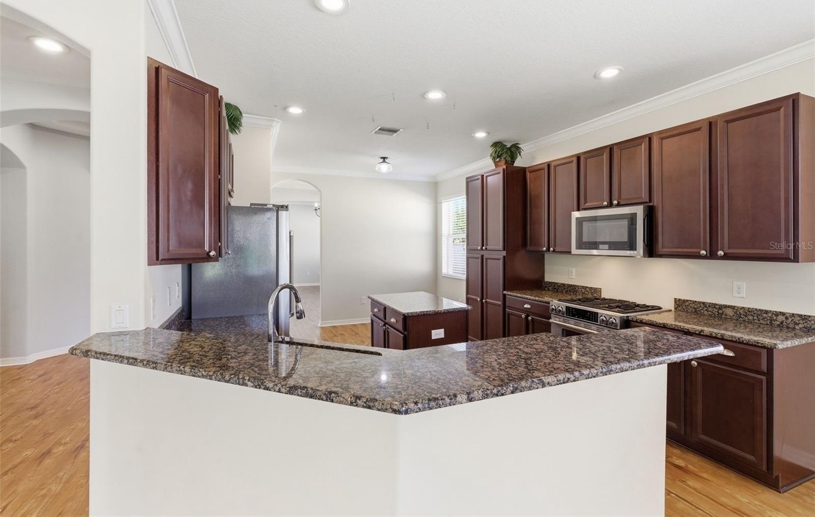 Designed for both everyday living and entertaining, the home features formal living spaces along with an open-concept kitchen and family room. The kitchen is well-appointed with granite countertops, center island, breakfast bar, and abundant cabinetry.