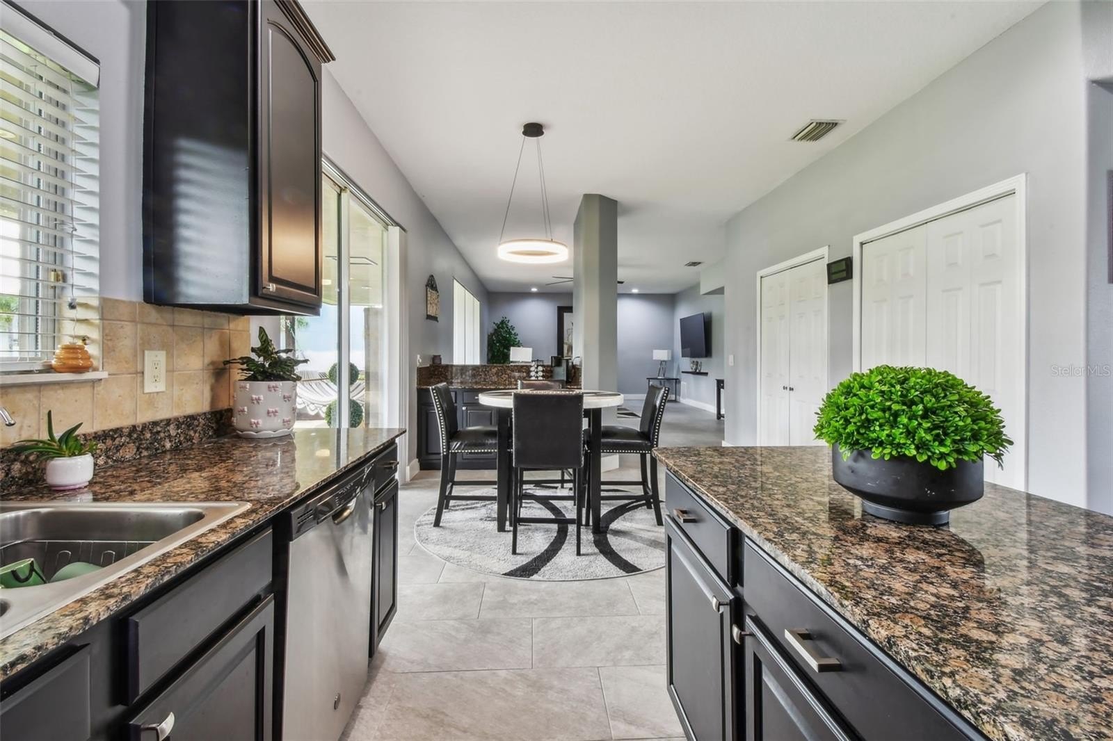 space. The large kitchen features Upgraded Cabinets, Stainless Steel Appliances, Double Oven, Granite Countertops , and Dry/Coffee Bar. The