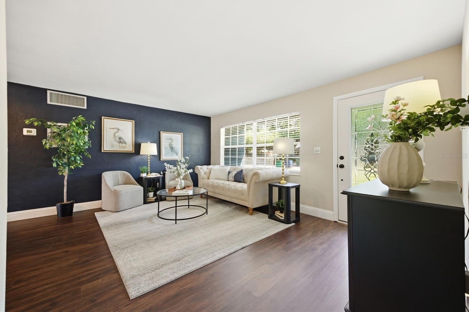Welcome to your impeccably updated South Tampa sanctuary! Situated on nearly a quarter-acre, this 3BR/2BA ranch perfectly blends modern sophistication with classic Florida charm. Step inside to find seamless luxury vinyl plank flooring and an effortless flow from the sun-drenched living and dining areas into the heart of the home. The reimagined kitchen is a showstopper, boasting indigo solid-wood cabinetry, quartz countertops, stainless appliances, and a dedicated dry bar with a wine fridge—perfect for entertaining.