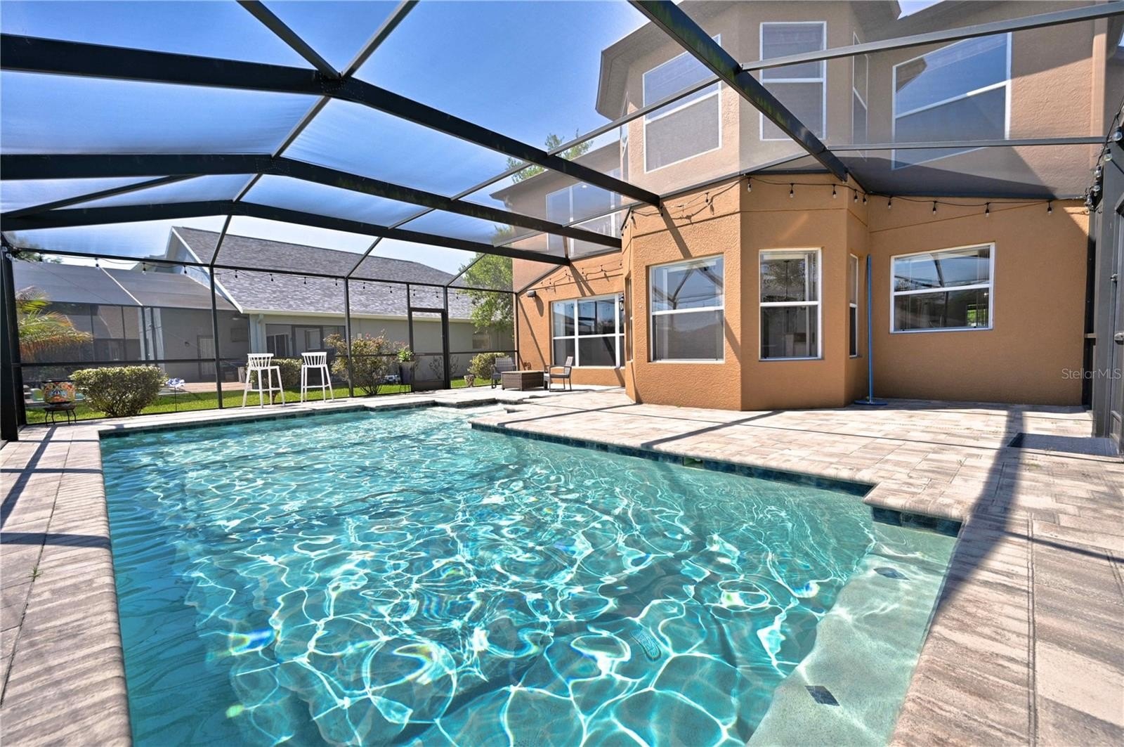 Offering a meticulously maintained 4-bedroom, 2.5-bath POOL home that offers the perfect combination of space, elegance, and functionality, complete with a DOWNSTAIRS OFFICE featuring French doors—ideal for working from home or easily used as additional living space. Many recent renovations, including a NEW ROOF in 2021, NEW WATER HEATER in 2024, and a NEW downstairs AIR CONDITIONER in 2025. Step through the grand entryway and take in the beautiful curved staircase and a blend of tile and wood flooring throughout. The thoughtfully designed floor plan includes a formal living room and dining room, along with a spacious family room highlighted by soaring cathedral ceilings and abundant natural light with views of the POOL. The kitchen is a true centerpiece, featuring an oversized island, ample cabinetry, and a layout that flows seamlessly into the main living areas and views of the POOL —perfect for entertaining or everyday living. Upstairs, the luxurious master suite is a private retreat, complete with its own sitting room. The en-suite includes dual vanities, a large soaking tub, a separate shower, and a generous walk-in closet. Step outside to enjoy your private backyard oasis with a sparkling pool—perfect for relaxing or hosting gatherings year-round in sunny Florida. Additional features include a 2-car garage with ample storage and a water softener for added convenience. The laundry room includes a washer and dryer, along with multiple storage shelves. Located just minutes from top-rated schools, shopping, dining, and major highways, this home offers both comfort and convenience in one of Wesley Chapel’s most desirable areas. Schedule your private showing today and experience everything this exceptional home has to offer!