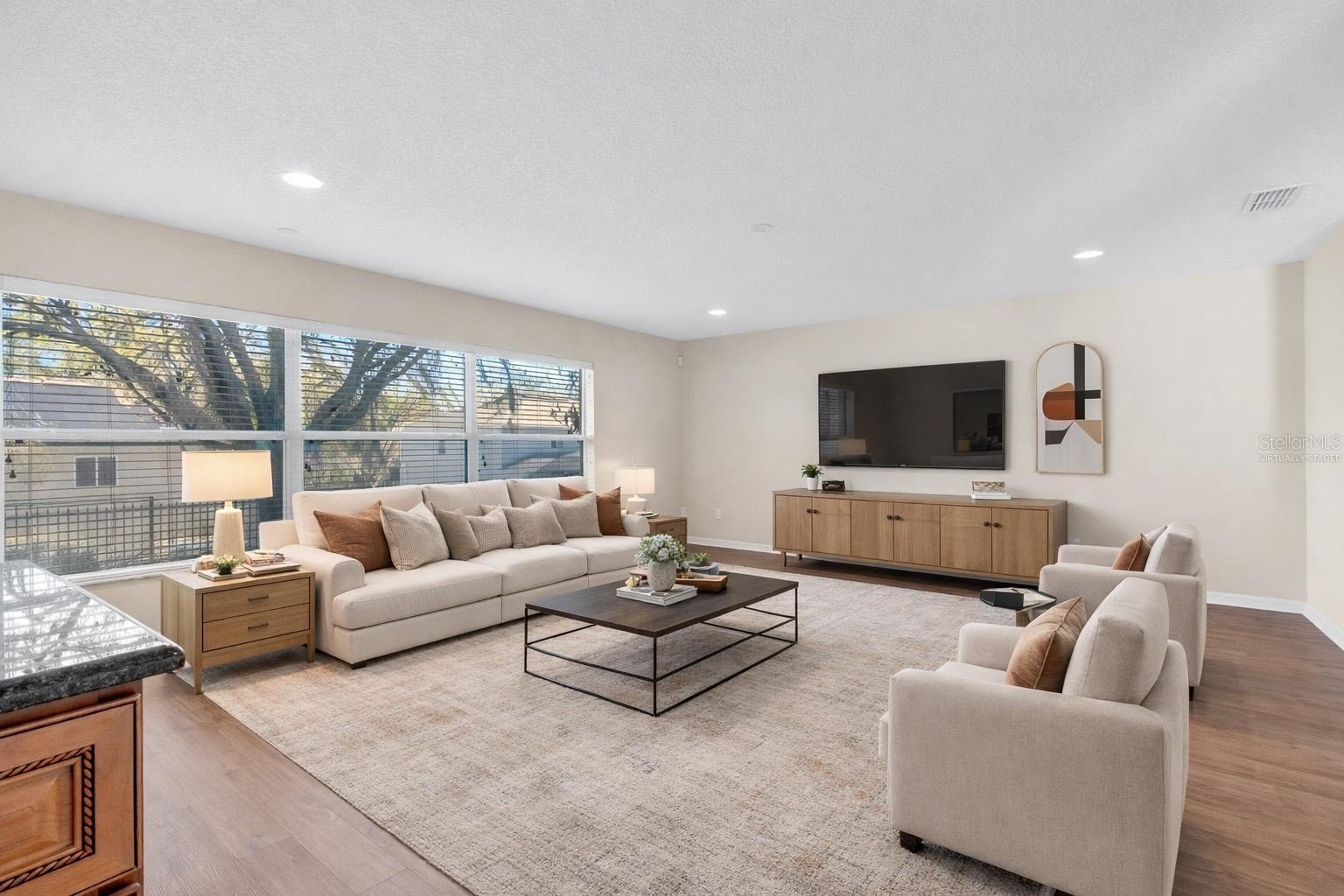 BEAUTIFUL updated house in a desirable neighborhood in Apopka! BRAND NEW ROOF 2026, New AC only year old, NEW flooring throughout and was recently painted. As you drive up to the property you're greeted by lush landscape and mature trees. Comfortably designed single story home offers 4 bedrooms with multiple large entertaining areas. Kitchen features beautiful custom cabinets, sturdy granite counter tops along with large island. Separate casual breakfast area off the kitchen leads to the screened lanai through the French doors. Ideal location of the house helps bring in so much natural light from all sides. Master bedroom offers a large walking closed and upgraded tray ceilings. Brand NEW frameless shower glass door has been installed in the master bathroom. Backyard is fully fenced and offers a great space for gatherings as well. Conviniently located next to FL 429, 15-20 mins to Downtown Winter Garden! Schedule your private showing today, this one will go fast!!!