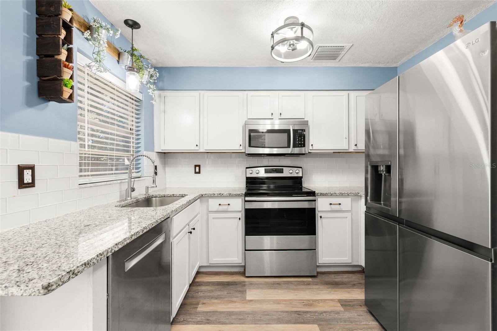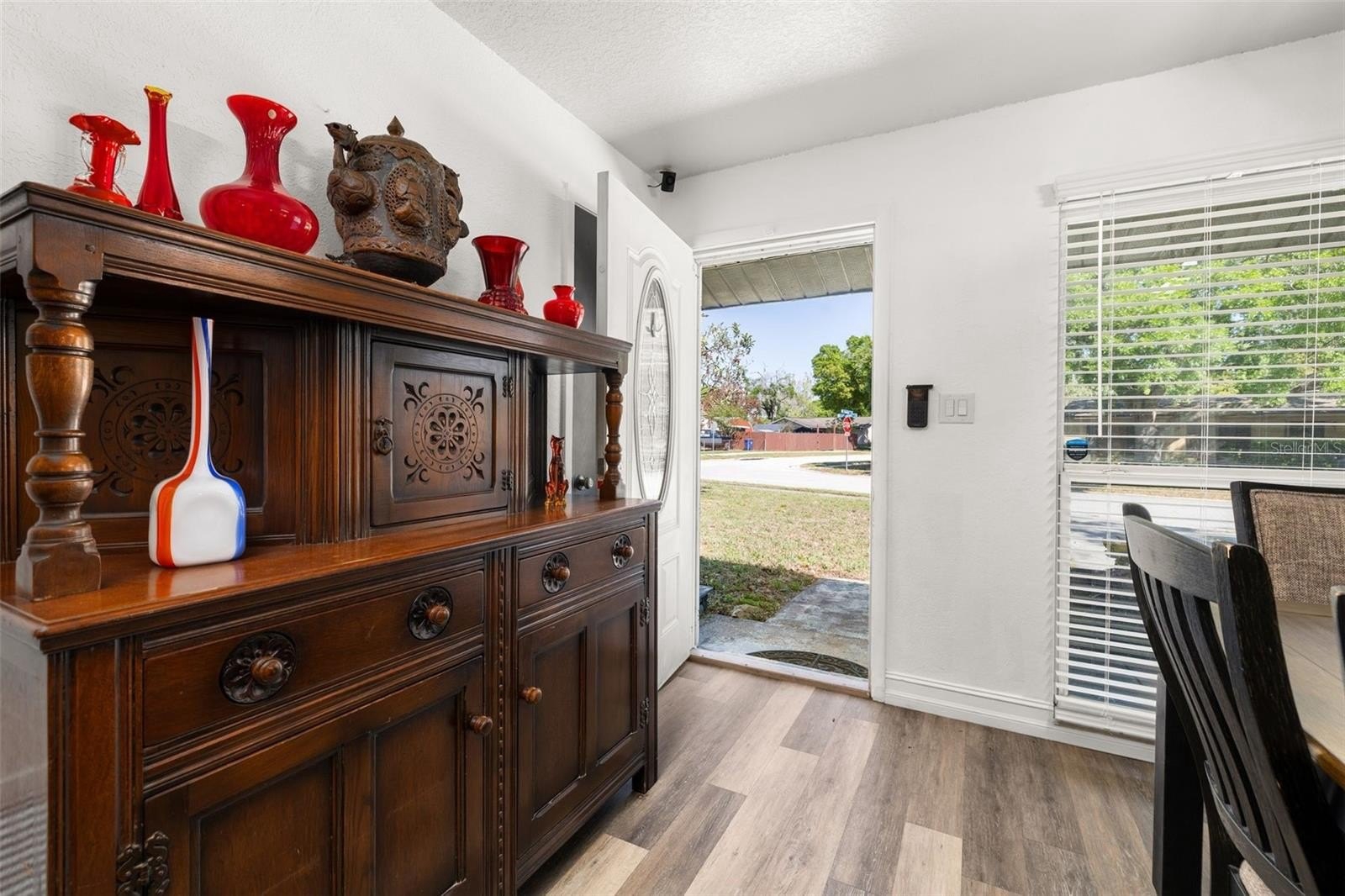 Don’t miss out on this charming and beautifully updated 3-bedroom, 1.5-bath home, perfectly positioned on a desirable corner lot. Featuring an OPEN FLOOR PLAN and modern touches throughout offering both comfort and style. The spacious kitchen boasts sleek GRANITE COUNTERTOPS, stainless steel appliances, and ample cabinetry for storage. LUXURY VINYL PLANK FLOORING extends through the dining room, living room, kitchen, and hallways, combining durability with elegance. The cozy living room is anchored by a STAND ALONE WOOD BURNING FIREPLACE, complemented by built-in shelves and a vintage exposed brick accent wall that add character and warmth. The primary bathroom has been tastefully updated with a contemporary feel, while upgraded lighting in the dining area creates a stylish ambiance. Step outside to a completely FENCED BACKYARD designed for privacy and endless possibilities. Enjoy relaxing or entertaining on the large SCREENED LANAI, gather around the FIRE PIT, or create your own garden oasis—whether flower, vegetable, or even a pool. A versatile ATTACHED SHED provides flexible storage options, household items, or a workshop. The front yard features a charming loquat tree, adding natural beauty and charm to the property. Additional features include an EXTRA WIDE DRIVEWAY for ample parking. Newer Roof from FEBRUARY 2018. Newer A/C from AUGUST 2019 and hot water heater from APRIL 2020. Primary bathroom is half bathroom. Located near popular restaurants, shopping, health clubs, and medical facilities, with easy access to highways 408, 429, and the Florida Turnpike, commuting is a breeze. Whether you're seeking a move-in-ready home or a space to personalize, this property offers the perfect blend of comfort, convenience, and potential. Don’t wait—schedule your showing today before this solid gem is gone!