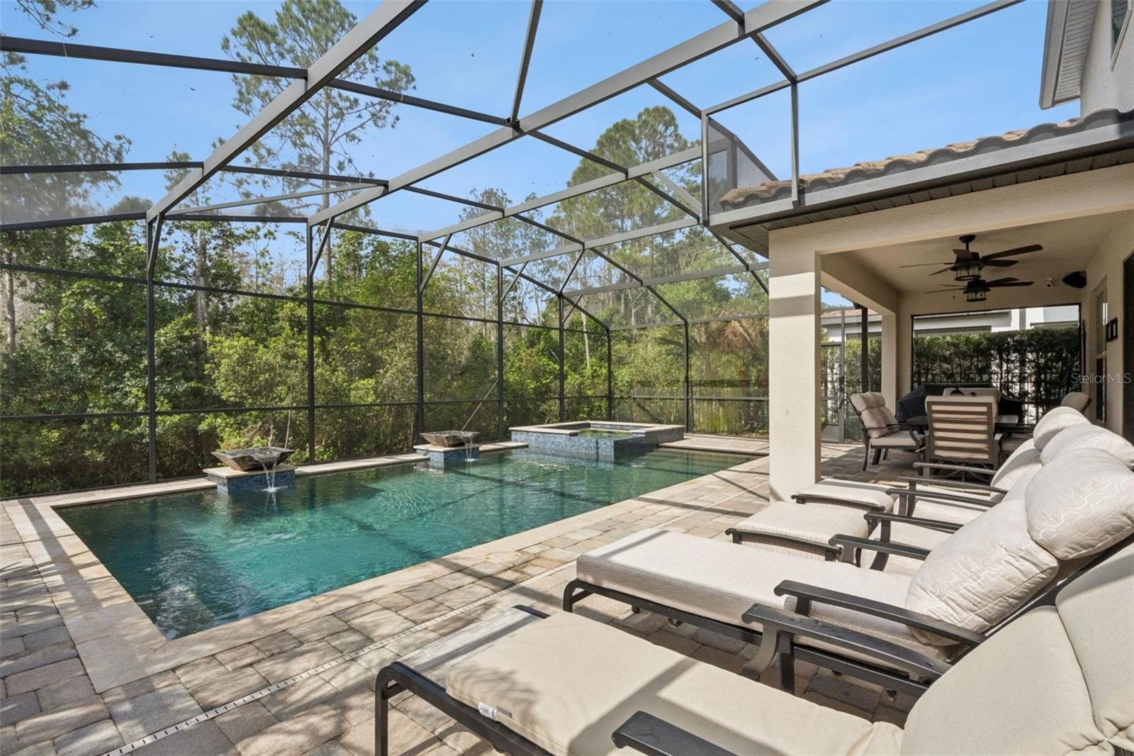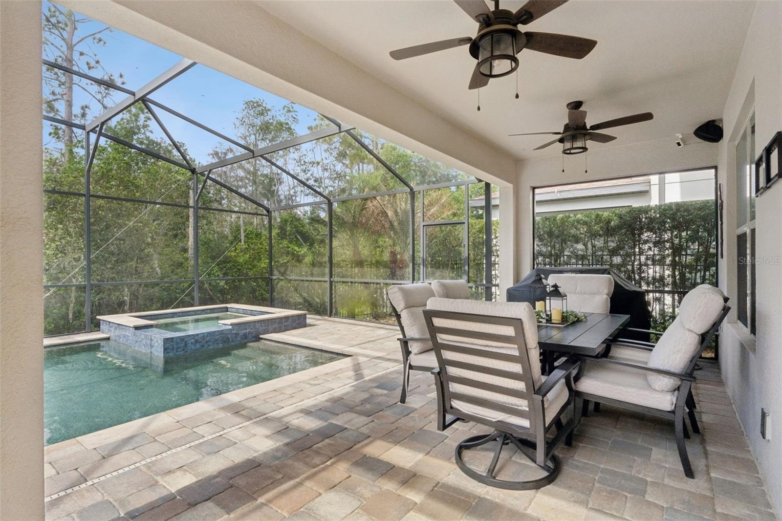 Step outside and let the magic continue. Your fully screened pool and spa with soothing water features and an extended lanai provides both sun and shade, perfect for everything from quiet mornings to lively evenings under the stars. With no rear neighbors and tranquil conservation views, this backyard retreat is your own private escape.