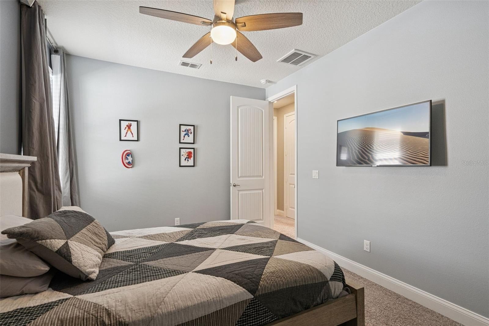 Upstairs, the loft becomes your own “happily ever after” gathering space, perfect for movie nights, game days, or a cozy retreat to unwind after a day at the parks. The primary suite feels like a private sanctuary, complete with a tray ceiling and a spa-like bath featuring dual vanities, a freestanding soaking tub, and a beautifully tiled walk-in shower. Secondary bedrooms are bright, airy, and generously sized, with thoughtfully designed bathrooms and convenient upstairs laundry.