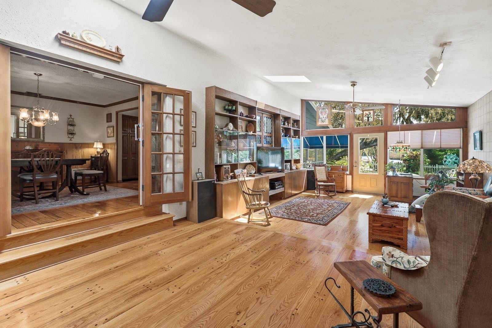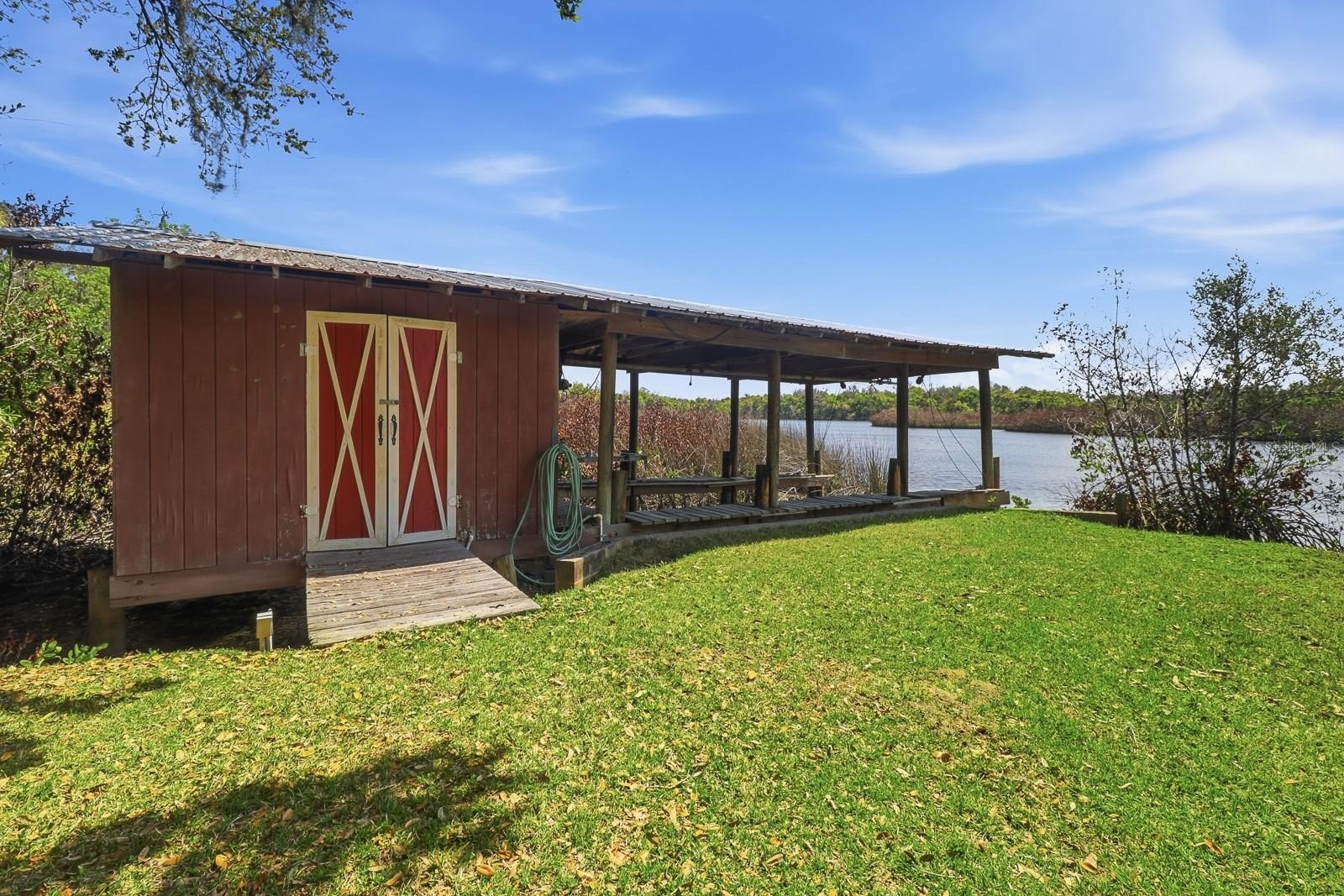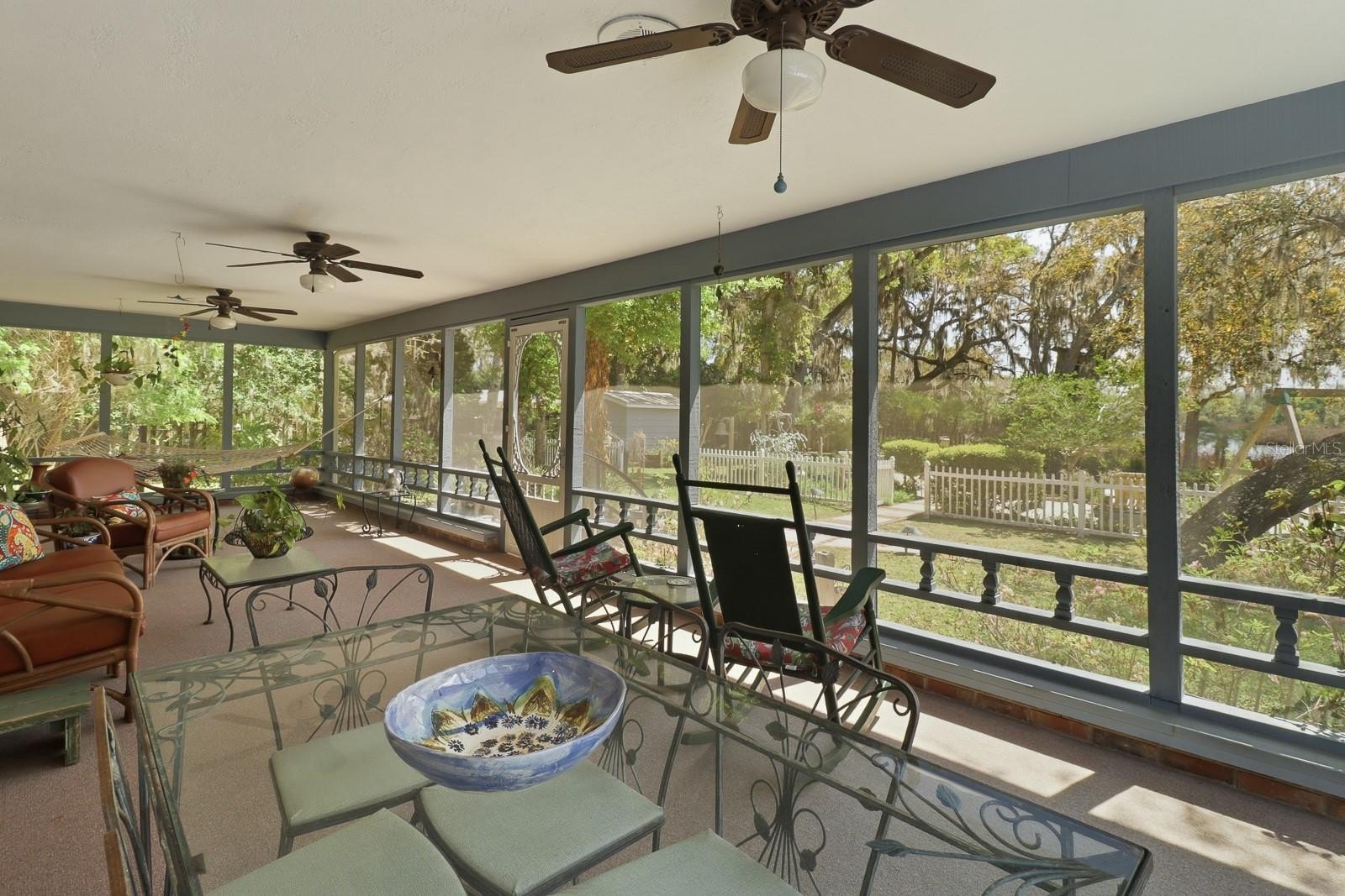 This extraordinary Craftsman-style estate offers almost 4,000 square feet of living space and stands as a rare, authentic expression of timeless Florida design. From the moment you arrive, the home’s architectural integrity and enduring charm are unmistakable—every detail thoughtfully curated, every inch rich with character. Set on a sprawling 1.34-acre lot, the property offers 112 feet of direct frontage on Spruce Creek, delivering a true waterfront lifestyle. Enjoy seamless access to the water with a private dock, boathouse, and boat lift—perfect for boating enthusiasts and nature lovers alike. Inside, warm wood accents, and natural textures create an inviting, refined atmosphere throughout. The home features four spacious bedrooms, three and a half bathrooms, and a dedicated office, perfectly suited for both everyday living and remote work. Two wood-burning fireplaces—one anchoring the main living room and another in the private primary suite, both adding a sense of comfort and classic elegance. A standout feature is the expansive great room, completely flooded in natural light and thoughtfully designed with flexibility in mind. Complete with a private entrance, full bathroom with clawfoot tub, and kitchen, this space can easily function as an in-law suite, guest quarters, or private retreat. Outdoors, the grounds are nothing short of enchanting- The pool area has been reimagined as a serene koi pond, complete with a fountain, stacked stone and surrounded by lush, native Florida plants- while still retaining the potential for reconversion to a traditional pool. Adding to the estate’s resort-style appeal is a private tennis court, offering the perfect space for recreation, exercise, or entertaining guests in a picturesque setting. The backyard continues to impress with its natural landscaping, with every square inch thoughtfully designed to celebrate Florida’s native beauty while creating a peaceful, private sanctuary. All major systems have been upgraded, including a commercial-grade metal roof that ensures durability and decades of longevity, while three separate air conditioning units and newer water heater provide comfort and efficiency throughout the home.