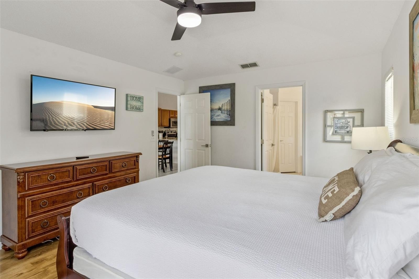 This spacious four-bedroom, three full-bath residence features a well-designed split bedroom floor plan, providing privacy and comfort for both owners and guests. One of the guest bedrooms includes its own private bath, making it ideal for visitors or short-term rental flexibility. The home offers a seamless flow with a kitchen and family room combination perfect for gathering, along with a separate living and dining room for added space and versatility.