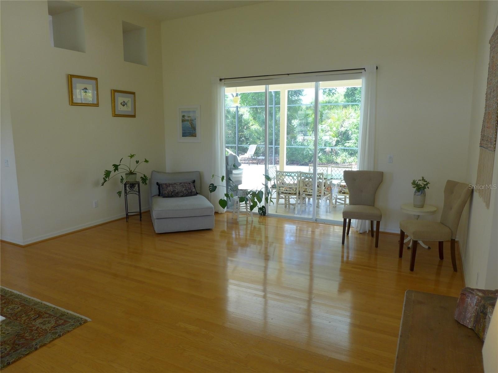 A secluded cul-de-sac family residence has just come onto the market. This lovely 3 bed 2 bath home just under 2,000 square feet has a beautiful private back yard with heated pool and covered lanai. The entry into the property takes you into a large formal living/dining room area with views and slider out onto the pool deck. The primary suite is privately situated and generously sized, complete with a walk-in closet and an en-suite bath featuring granite countertops, dual vanities, a soaking tub, and a separate glass-enclosed shower. Two additional bedrooms are located on the opposite side of the home with a full bath between them, providing excellent guest privacy. The open plan kitchen/nook/family room area gives a spacious feel with plenty of room to relax and provides the perfect setting for entertaining and family gatherings. The kitchen offers generous cabinetry, and a casual eat-in nook overlooking the family room.The utility room with newer washer/dryer has a sink, ideal for cleaning off the golf clubs. The large 2 car garage has boarded out loft access ideal for storage.