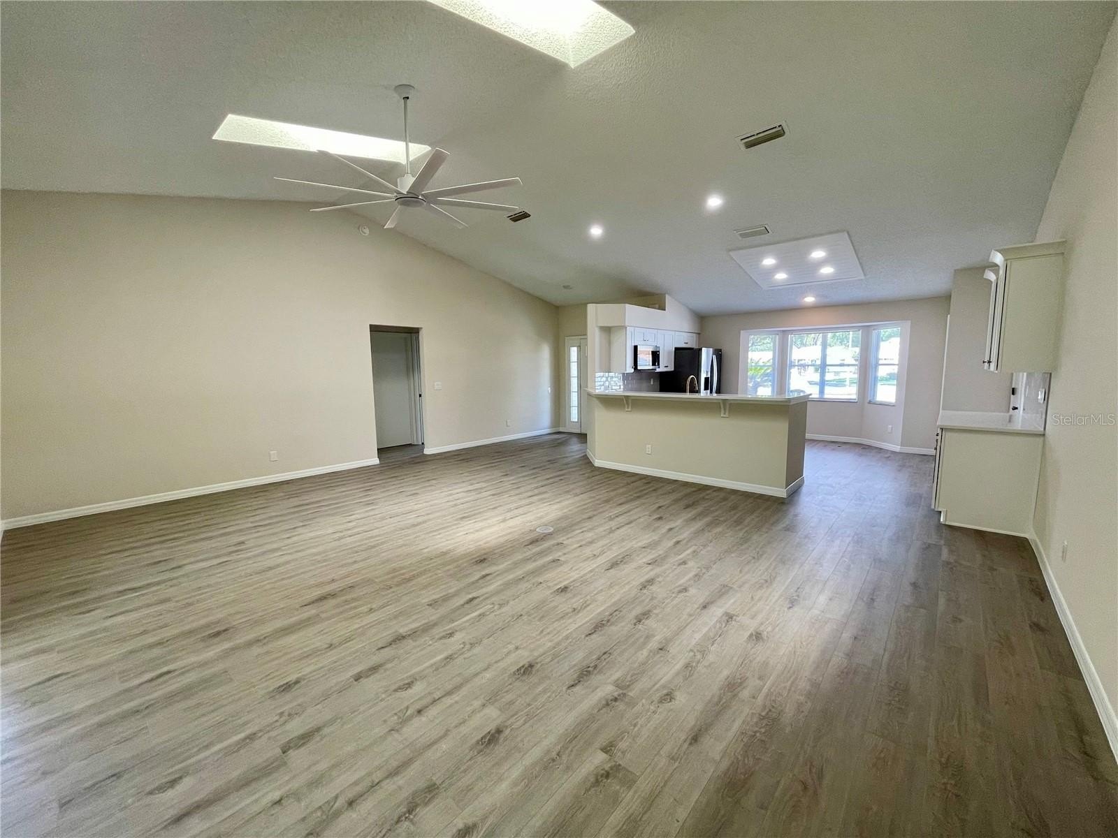 From the moment you step inside, soaring ceilings and BRAND-new, modern waterproof laminate flooring create an airy, expansive feel that flows through every room. The heart of the home is a chef’s dream kitchen, featuring custom BRAND new solid wood cabinetry with soft-close drawers, elegant quartz countertops, and a stunning glass tile backsplash. ALL-NEW Stainless steel appliances—including a gas range—make entertaining a breeze.
