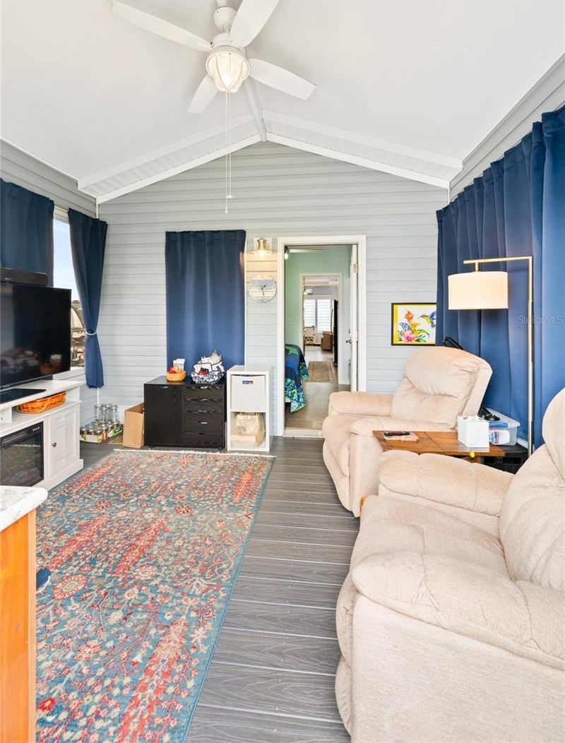Welcome to this charming one bedroom, one bath home located in a desirable gated community. Built in 2020 and offering 481 square feet of thoughtfully designed living space, this cozy residence is perfect for those seeking comfort, efficiency, and low maintenance living. Inside, you will find crown molding throughout and LVT flooring adding a touch of sophistication. The kitchen features 42-inch cabinets, beautiful backsplash, and granite countertops, providing both style and functionality. The home features a bright and inviting layout, with a Florida room in the back perfect for relaxing, entertaining, or enjoying the sunshine year round. Situated on a paved lot, the property is in a golf cart friendly community, and it also boasts a lovely gazebo perfect for outdoor relaxation or gatherings. There is also a shed (10x12) for additional storage, providing convenient space for all your belongings, Recent updates included a new roof in 2024 and AC 2021. Whether your'e seeking a primary home, a vacation retreat, or an investment, this property offers a fantastic blend of modern comfort, upgraded features, and a secure community atmosphere.