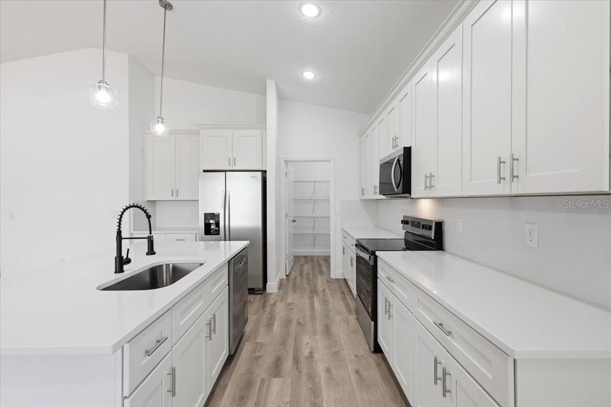 Brand-New Pool Home in Haines City. Where modern meets comfort! Beautifully designed 4-bedroom, 3 full bath + 1 pool bath home featuring an open-concept layout with modern finishes and abundant natural light. The gourmet kitchen offers quartz countertops, stainless steel appliances, contemporary cabinetry, and a spacious island. Enjoy true Florida living with fully retractable sliding glass doors that disappear into the wall, seamlessly connecting the indoor space to the screened-in pool and covered lanai. Additional upgrades include an epoxy-coated garage floor, pending lights, elegant faucets, and high-end finishes throughout. Conveniently located near shopping, dining, major highways and Central Florida attractions, this property is ideal as a primary residence, vacation home, or investment opportunity.