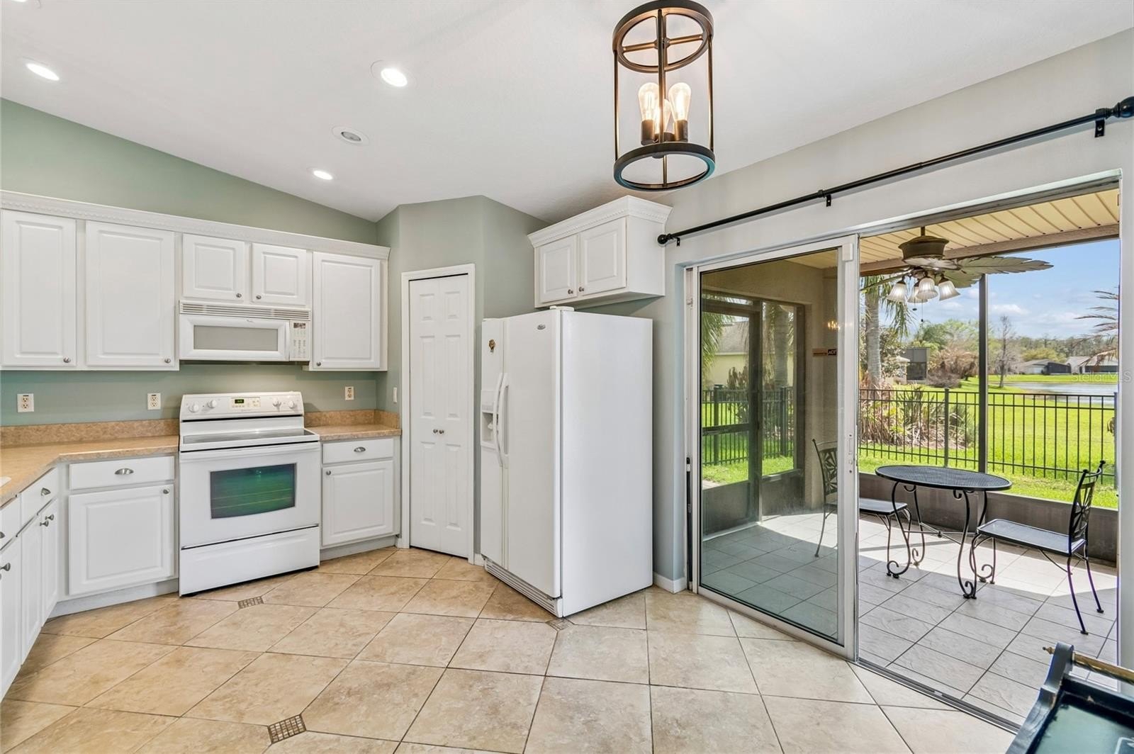 Step into this lovely DUVAL model with peaceful WATER VIEWS in the popular Venezia neighborhood of Solivita. This 2-bedroom, 1.5-bath home has a bright, OPEN LAYOUT that makes it feel welcoming and easy to live in. Inside, you’ll notice the CERAMIC TILE FLOORS set on the diagonal with decorative MOSAIC ACCENTS that add a nice touch throughout the main living areas. The spacious kitchen has plenty of counter space, a COZY EAT-IN AREA for everyday meals, and a CLOSET PANTRY for extra storage. Sliding glass doors lead outside, letting in lots of natural light and making it easy to enjoy the outdoors. The BREAKFAST BAR opens to the dining area, so you can chat with guests while getting meals ready. The combined living and dining area is highlighted by VAULTED CEILINGS and abundant natural light, creating a bright and airy atmosphere. Step outside to your COVERED, SCREENED LANAI, where peaceful EASTERLY WATER VIEWS provide the perfect backdrop for morning coffee or relaxing evenings. A FENCED YARD adds a great space for pets to enjoy. The PRIMARY SUITE offers tranquil pond views, a large WALK-IN CLOSET, and an EN-SUITE BATH complete with a tub/shower combination and linen storage. A second bedroom and convenient half bath complete the interior layout. HVAC WAS REPLACED IN 2025. Additional features include a 1.5-car garage with washer and dryer, UTILITY SINK, and built-in storage cabinets. Don’t miss this rare opportunity to own a slice of paradise—schedule your private showing today and experience all that this award-winning community has to offer! The HOA: - maintains the LANDSCAPING & IRRIGATION systems in the common areas as well as at individual homesites - maintains the roads throughout the community - PROVIDES SECURITY with gate guards and mobile patrols including the Polk County Sheriff - allows AUTOMATED GATE ACCESS for residents via license plate readers - provides residents with Fiber Optic Internet & TV service.***Poinciana Lakes Plaza is a MAJOR NEW SHOPPING CENTER directly across from the Solivita Main Gate. It features Sprouts Grocery, TJ MAXX, Ross, Burlington, Rack Room Shoes, 5 Below, Ulta, Outback, First Watch, 5 Guys, Panda Express, Bojangles, Jersey Mike's Subs, 5 Guys, Papa John's Pizza, Burrito Bar, Cold Stone Creamery, Urgent Care, Dentist, Hand & Stone Massage, America's Best Eyeglasses, Crunch Fitness, Hair Cuttery, Petco, TD Bank, Verizon Mobile, PLUS MORE TO COME.***