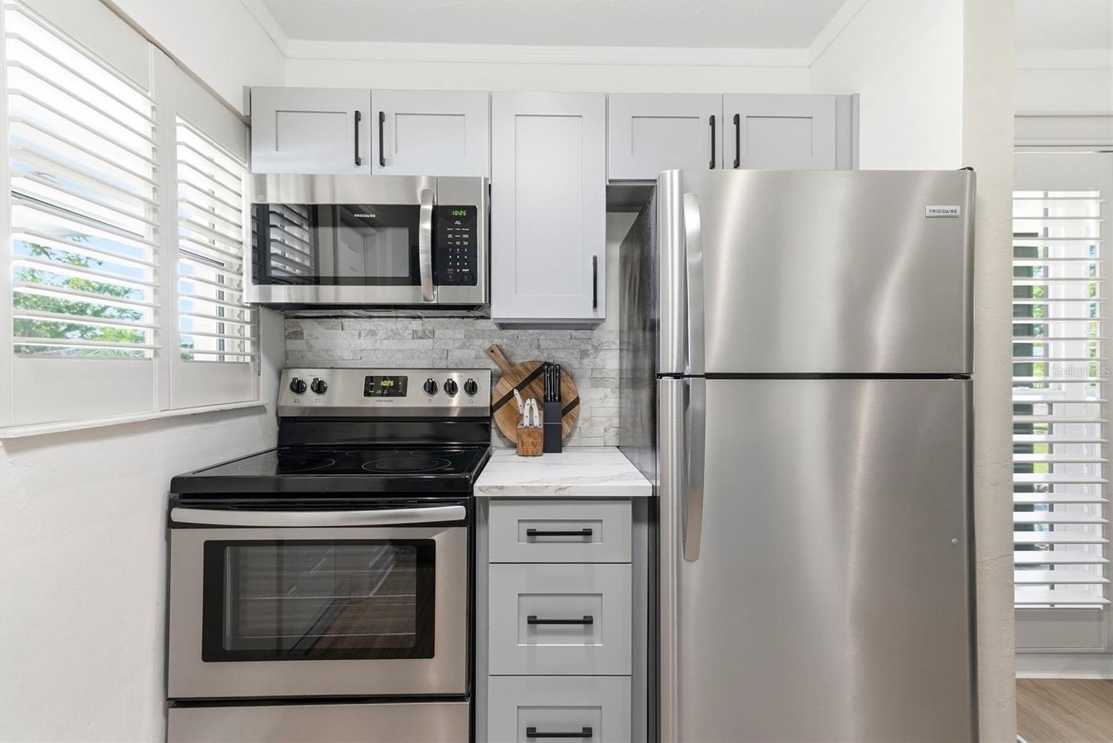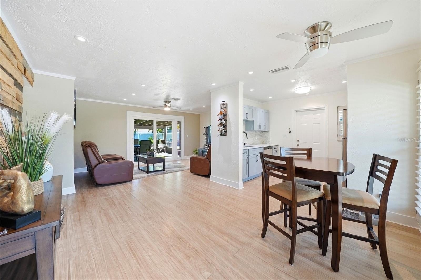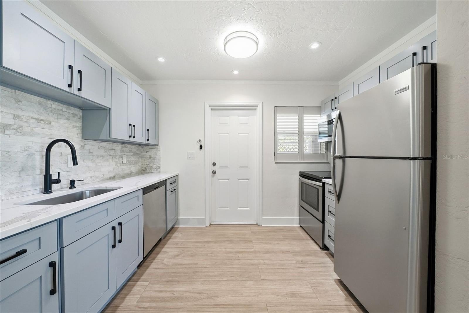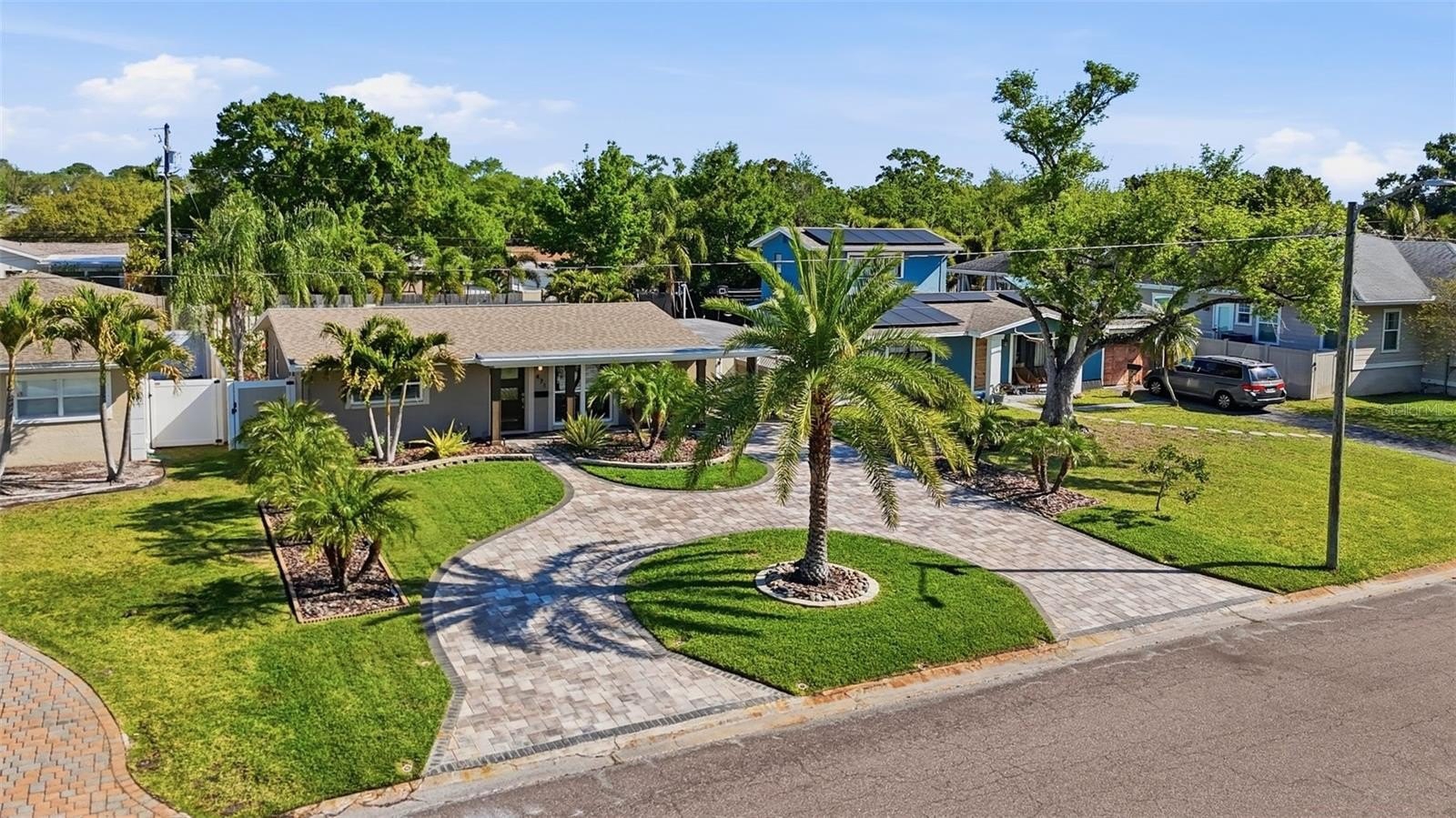 Fresh updates, smart improvements, and outdoor space that gives you options—471 42nd Ave NE checks the boxes for buyers who want a move-in-ready home in a location that puts them close to it all. From the moment you arrive, the fresh exterior paint, circular driveway, and and a beautiful mix of mature palms that give this home a polished tropical feel. The covered front porch gives you a comfortable place to relax, while the carport offers convenient access straight into the kitchen. The kitchen has been beautifully updated with solid wood cabinetry, quartz countertops, and stainless steel appliances. There is also a designated laundry room with the newer electrical panel, water heater, and added storage space. The covered front porch creates a welcoming place to sit and enjoy the outdoors, while the carport offers easy access directly into the kitchen. Inside, this remodeled 2 bedroom, 1 bathroom home features an open floor plan, wood-look tile flooring, hurricane-rated windows, and a beautifully updated bathroom. The bedrooms have built-in closets and plenty of natural light.