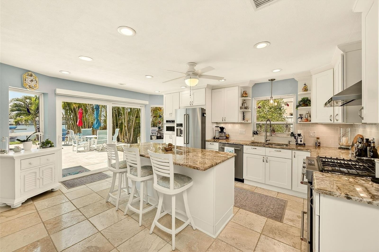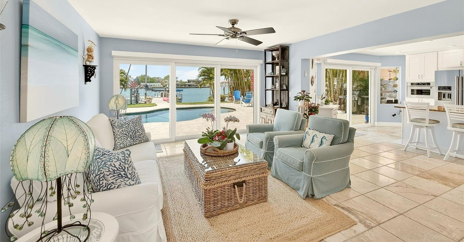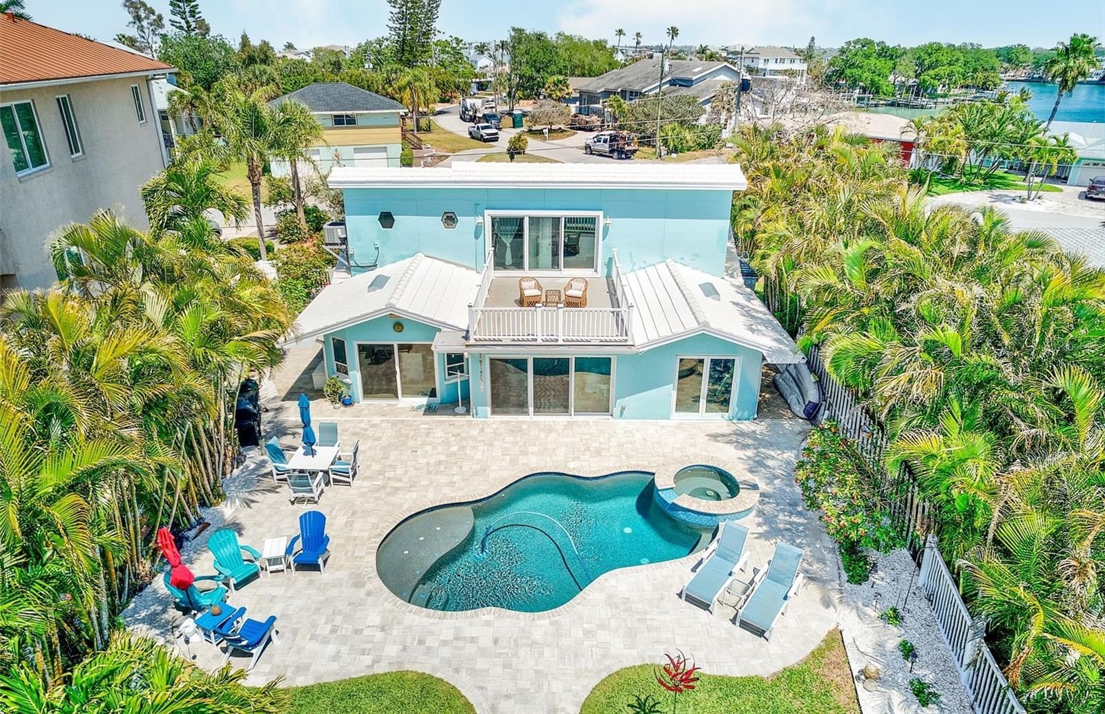 Spectacular two-story waterfront home in Indian Rocks Beach. This updated, move-in-ready home has been thoughtfully designed for indoor-outdoor living. Three bedrooms and three bathrooms, the primary bedroom and en-suite bath encompass the second floor with an additional 2nd floor patio that is perfect for watching sunrise or sunset. The open floorplan on the main level is filled with abundant natural light and creates a bright, airy ambiance. The spacious kitchen boasts ample counter space and a layout that encourages effortless meal preparation and entertaining. Stepping outside, the property's lush landscaping and tropical oasis create a serene and relaxing atmosphere. The expansive outdoor living areas, includes an inviting patio, private salt cell pool and jacuzzi, offering the perfect space to enjoy the coastal lifestyle and scenic waterfront views. The dock provides direct water access to the bay and Gulf. Out front, the spacious driveway ensures ample parking for guests, complementing the overall ease and comfort of this coastal living experience. Come and take a look today!