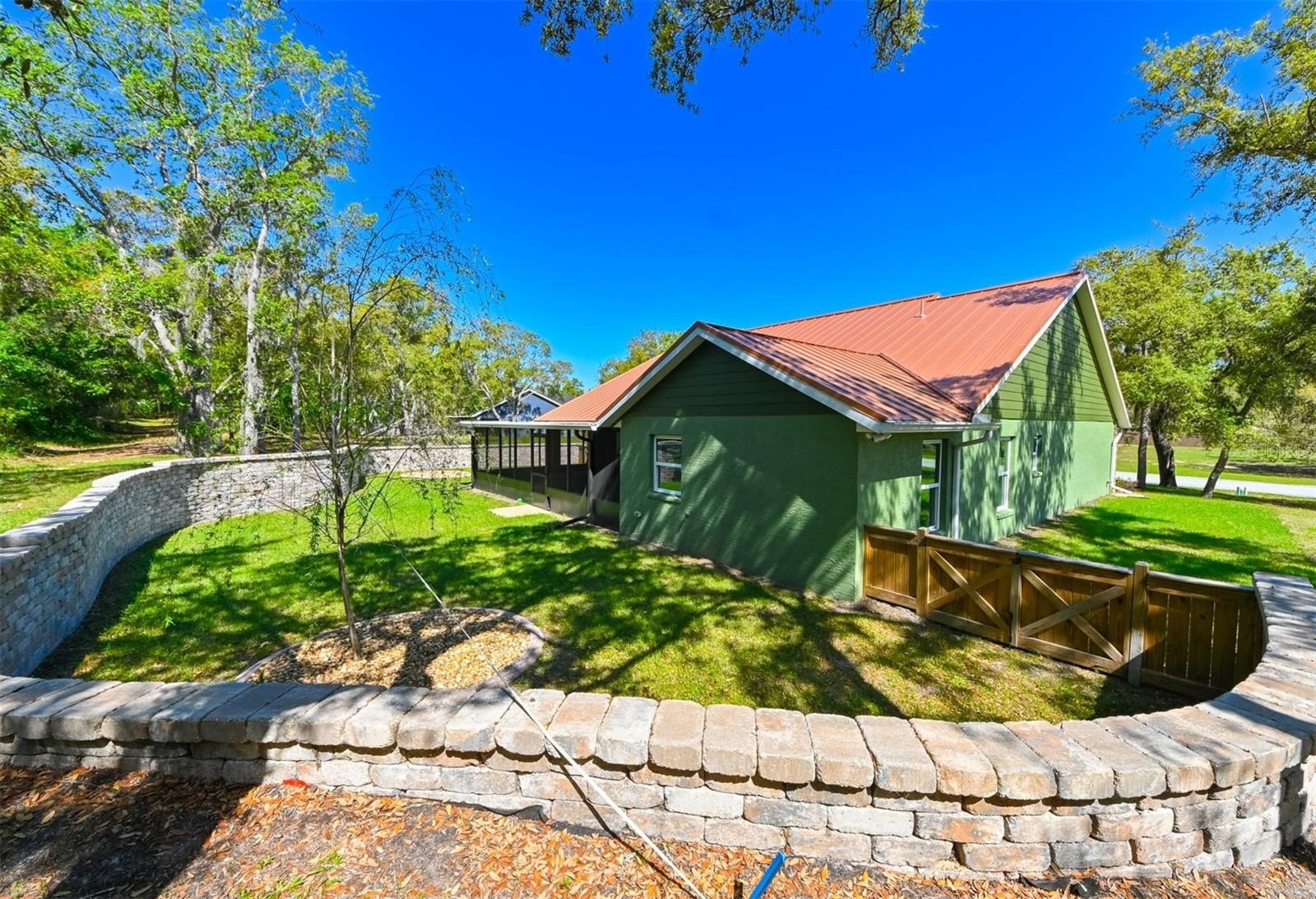 NEW CONSTRUCTION, A TRULY CUSTOM HOME UNSURPASSED IN CRAFTSMANSHIP AND FEATURES. Highlights include a stunning copper coloured metal roof ($45K), a large, paved, screened-in lanai with a rectangular propane fire pit ($120K) and an elegant stone retaining wall ($50K) joined by a wooden fence enclosing the back yard for maximum privacy. This custom home is offered by a longtime area builder and no expense was spared in its creation! Built for longevity, low maintenance and energy efficiency, you will not find another home in its class at this price point. 3 BR/2 bath/2 car garage. Open plan. Volume ceilings. Upscale kitchen appliances. Breakfast bar. Separate dining area. Tray ceilings in each BR. Stone countertops throughout. Custom lighting. Custom cabinetry. Epoxied floor in the garage. Custom built closet encloses the HVAC unit. Dedicated laundry closet. TESLA charger in garage. Plumbed for outdoor gas grill. Primary bedroom features dual closets, dual bathroom vanities and custom tile in the large walk in shower. Low HOA is $125/mth. Genuinely superior construction overall. Great attention to detail and design features. Community pool and clubhouse are in the planning process with no definite finish dates. The Stonegate community is highly unique and strategically located! Upgraded and custom features are part of every home package with a strong focus on energy efficiency, longevity and overall low maintenance. A Standard Features list is available upon request. Stonegate is very convenient to the recently completed extension of the Suncoast Highway making the overall location convenient to Tampa, Tampa International airport & environs. Citrus county is well known for its pristine waters and famous springs. The actual date of construction is 2024 with COO issued in 2024. Move in ready, never occupied. This home is offered for sale only, please no rental requests. Builder states no offers site unseen. Buyer to verify taxes with county. This property is BRAND NEW and has significant upgrades that are unique to the community.