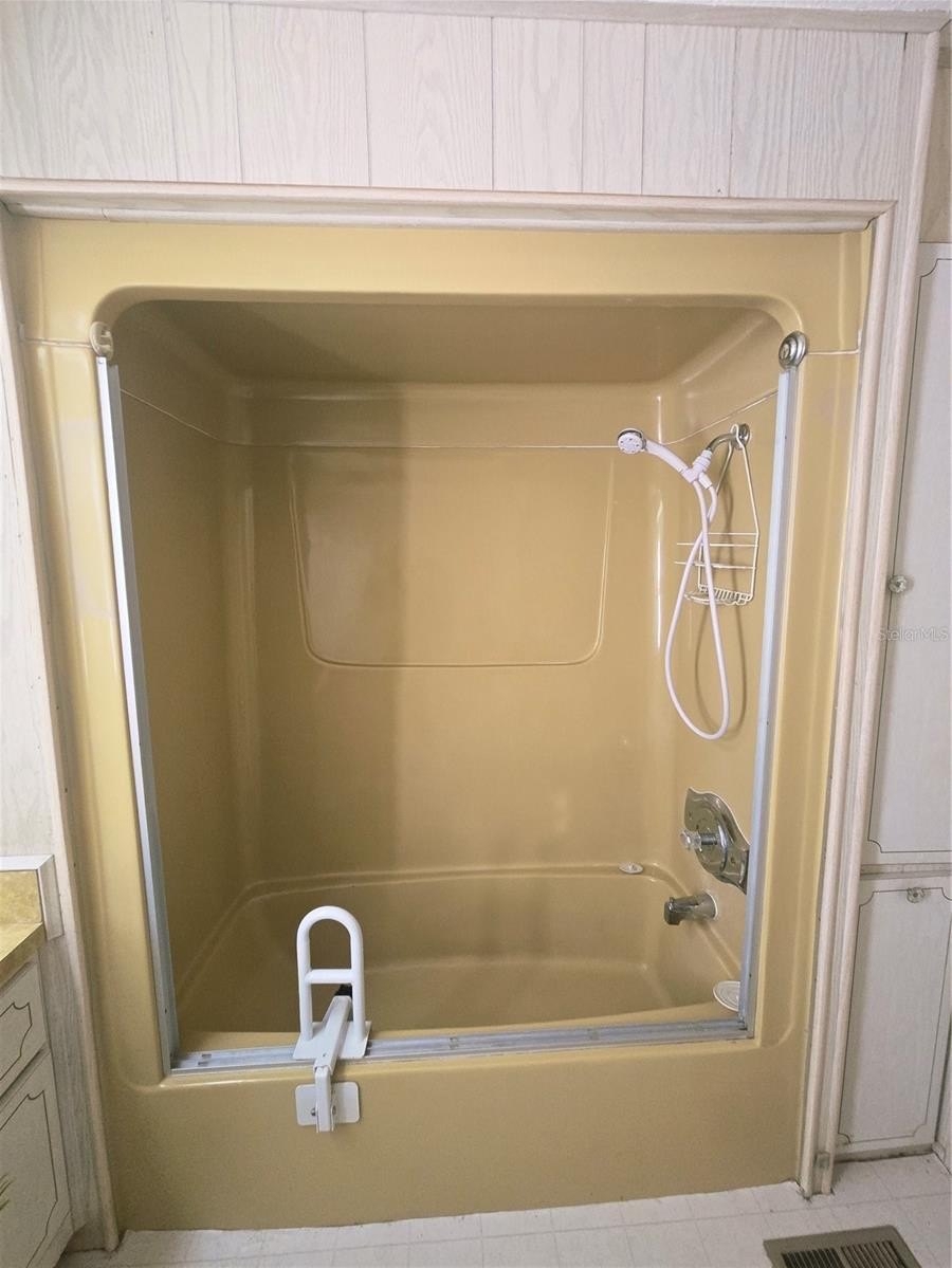 Additional features include a spacious 6x8 shed with a full-size side-by-side washer and dryer. The exterior walls are with vinyl siding, and an updated electrical system (2000). The HVAC system was replaced in 2021. The roof-over covering the main heated living area was installed in 1999 and will need replacement. There is also a metal roof over the carport, shed, and Florida room. The extended 11x44 carport easily accommodates two vehicles and a golf cart.
