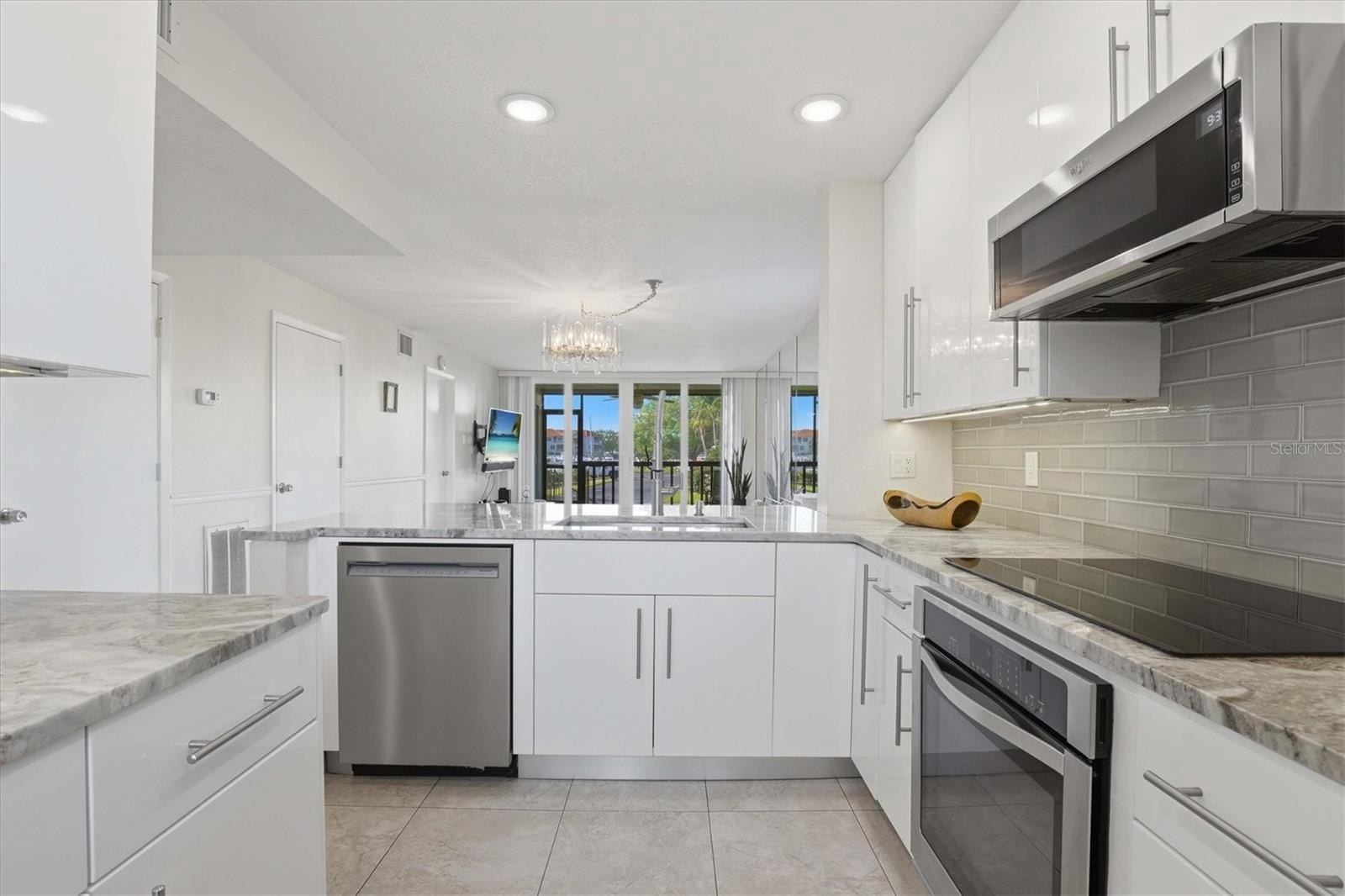 Impact-rated sliders and newer hurricane-impact windows and doors provide peace of mind while allowing you to enjoy the coastal setting year-round from your private screened lanai. Inside, the home features an open kitchen and dining area with light cabinetry, solid granite countertops, glass tile backsplash, newer appliances, and updated lighting, fixtures, and hardware. A split-bedroom floor plan ensures privacy, with each bedroom offering its own newly renovated bath. Additional highlights include tile flooring in the kitchen, baths, and entry, as well as a convenient in-unit washer and dryer.