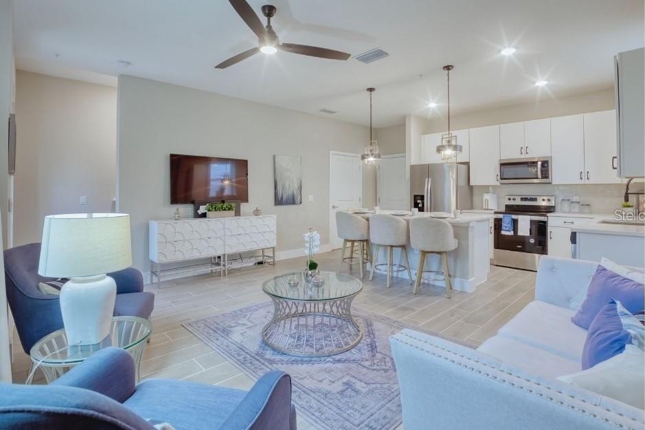 Welcome to SoHo at Lakeside, where modern living meets everyday comfort in one of Central Florida’s most convenient locations. This beautifully designed 3-bedroom, 2.5-bath townhome offers a bright and open layout with 9-ft ceilings, creating a warm and inviting atmosphere from the moment you walk in. The stylish kitchen features 42" cabinetry, stainless steel appliances, and elegant countertops—perfect for gathering and making memories. Upstairs, the primary suite becomes your private retreat with its own balcony, dual closets, and a spacious double vanity. Just minutes from Lake Nona, Orlando International Airport, and world-class entertainment, this home truly places you at the center of it all. Enjoy a low-maintenance lifestyle with HOA-included cable and internet—simply move in and start living.