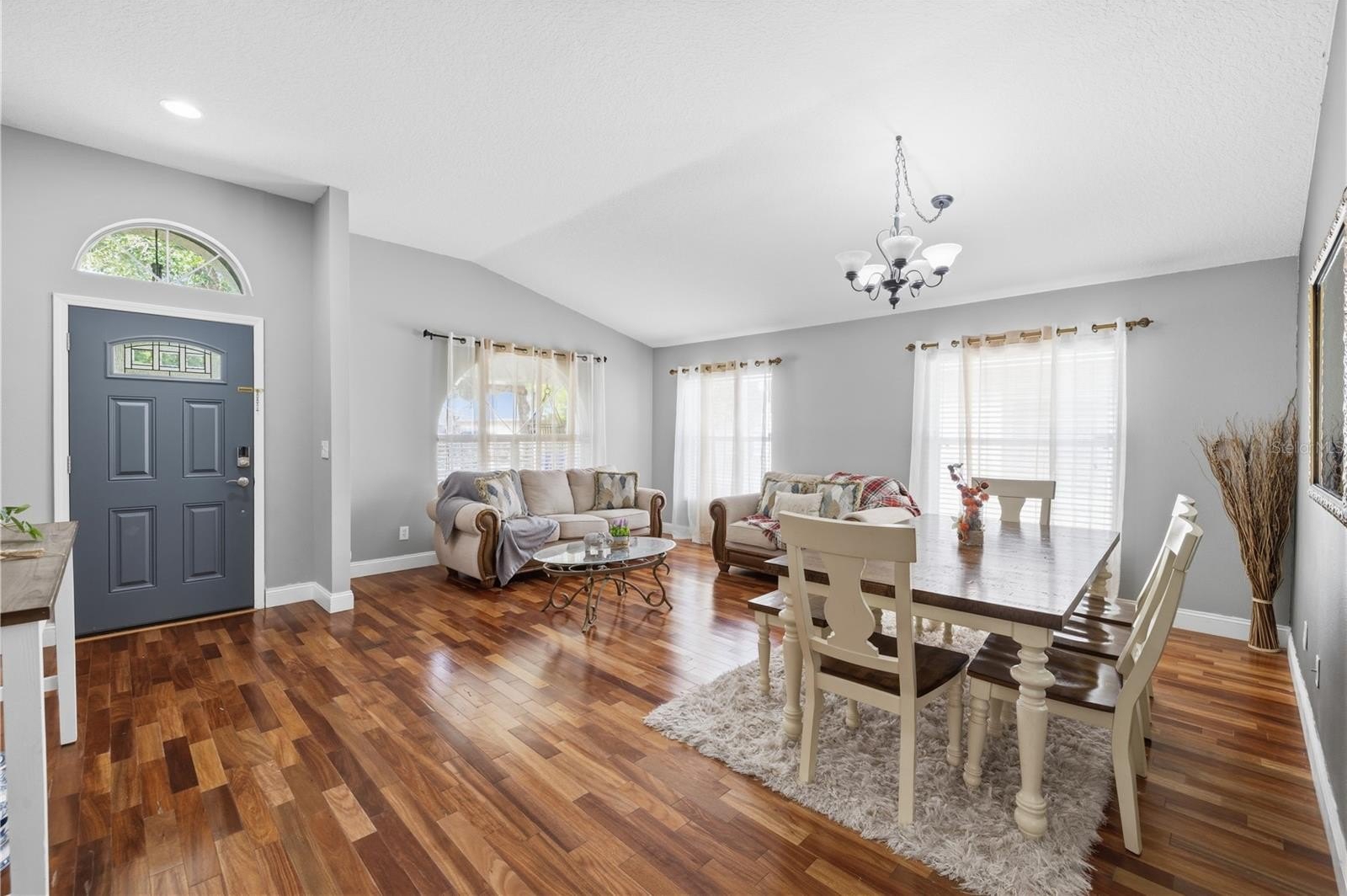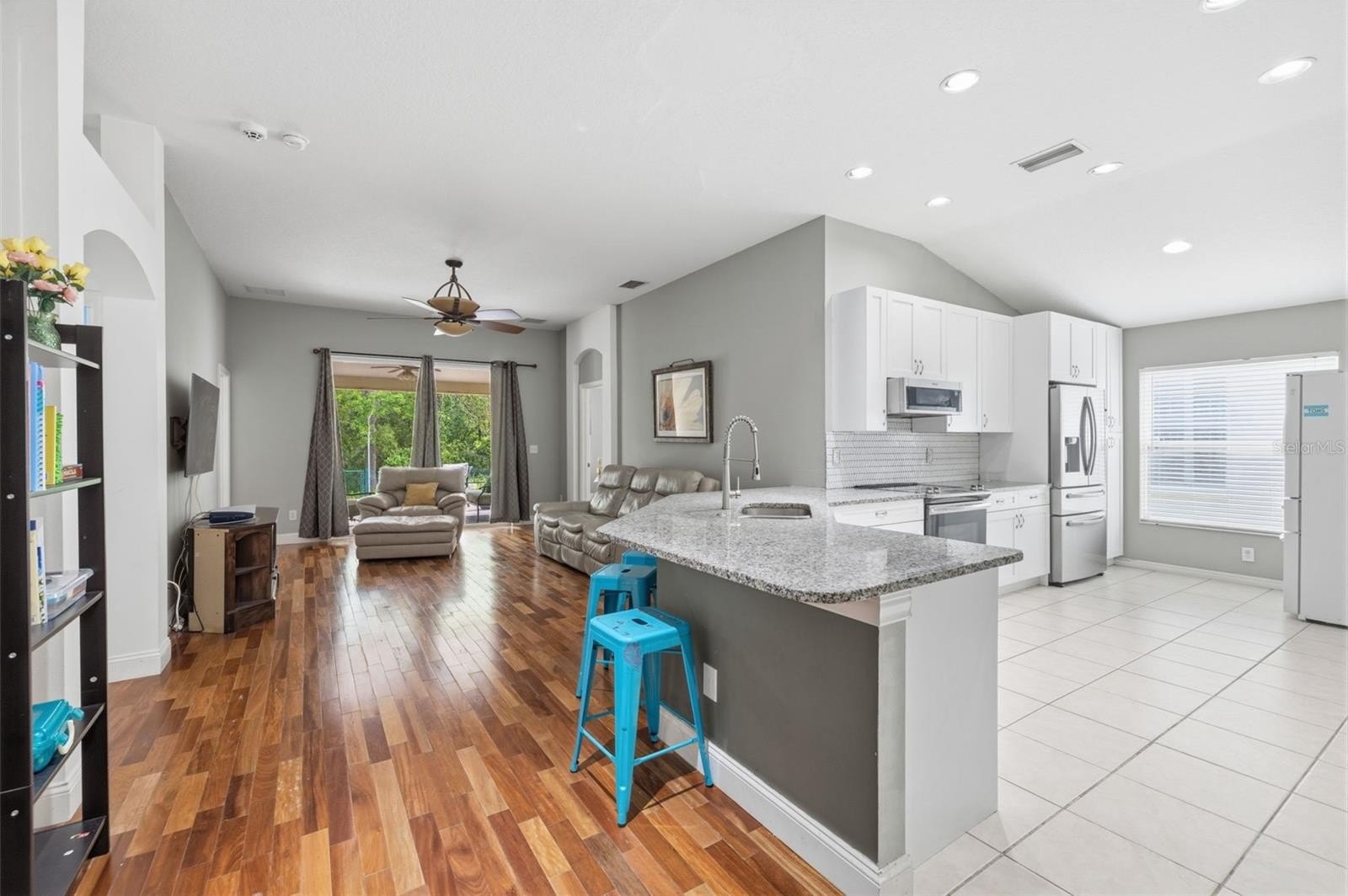 The kitchen features granite countertops, updated shaker cabinets, and flows seamlessly into the main living areas, perfect for everyday living and entertaining. Engineered hardwood floors add warmth and durability, while the primary suite includes a private en-suite bath, with a garden tub, walk-in shower, and walk-in closet.