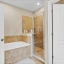 charming private balcony, a luxurious en suite bath with dual vanities, a glass-enclosed shower, and a soaking garden tub. The chef’s kitchen is
