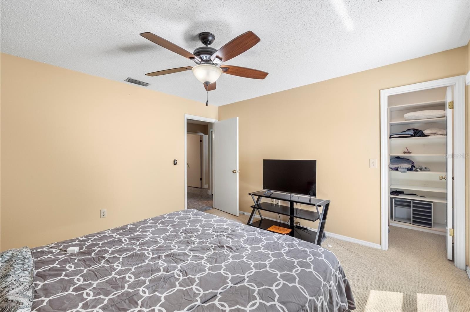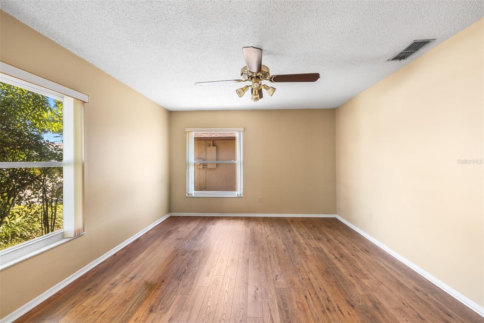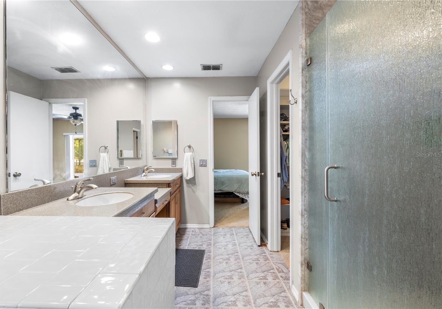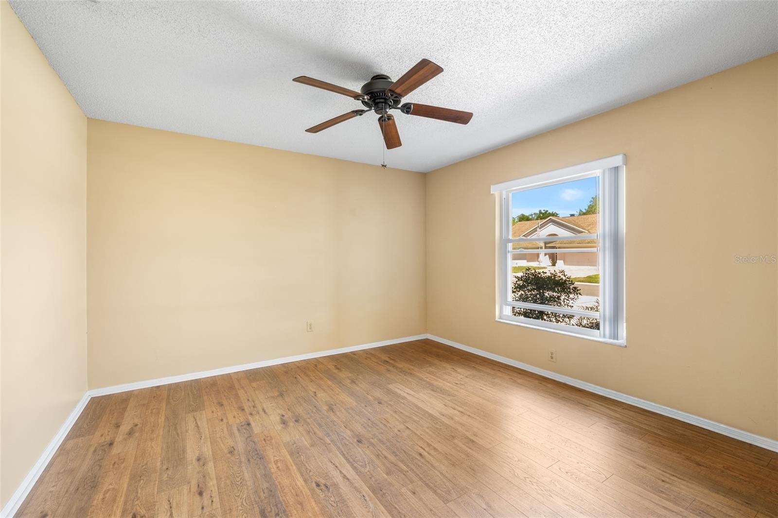 Pebble Creek Village! ONE STORY HOME WITH NO REAR NEIGHBORS!! 4 Bedroom 2.5 bath home with extra space for formal dining/ play room plus office space! This home offers northern charm and peaceful POND VIEWS, best enjoyed from the HUGE SCREENED REAR LANAI. The open layout features a great room with a granite-framed wood-burning fireplace and custom maple built-in cabinetry that continues into the kitchen. The kitchen includes GRANITE countertops and backsplash, a center island, stainless steel appliances, ample maple cabinetry, and a built-in workspace. The primary suite provides lanai access with water views and an ensuite bath featuring dual sinks, a garden tub, and a remodeled walk-in shower. A nearby bedroom includes a private mini-bath with shared access to the primary bath, offering a unique and functional layout. Split floor plan with 2 bedrooms on one side of the home and other 2 on half. Additional features include updated plumbing, energy-efficient double-pane windows and sliding doors, solar tubes for natural light, an interior laundry room, and a two-car garage. Conveniently located near I-75 with access to Tampa, Wesley Chapel, and community amenities including playground, tennis and basketball courts!