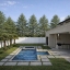 The outdoor living experience is equally considered, featuring a covered lanai with marble flooring, a fully equipped summer kitchen, and a modern pool and spa designed with clean geometric lines. A dedicated pool bath adds convenience, while the open layout and refined landscaping create a space that feels both private and effortlessly connected to the home.