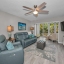 Price Improved. Beautiful condo with mature landscaping, offering partial water and nature views. This 2-bedroom, 2-bathroom unit features an open floor plan with updated kitchen and bathrooms, a living room-kitchen combo, and a cozy sitting area to enjoy the stunning views. The condo is bright and modern, with luxury plank flooring throughout, except for tiled wet areas. The updated kitchen includes soft-close white cabinets, quartz countertops, stainless steel appliances, a bar counter, and neutral tones to suit any style.