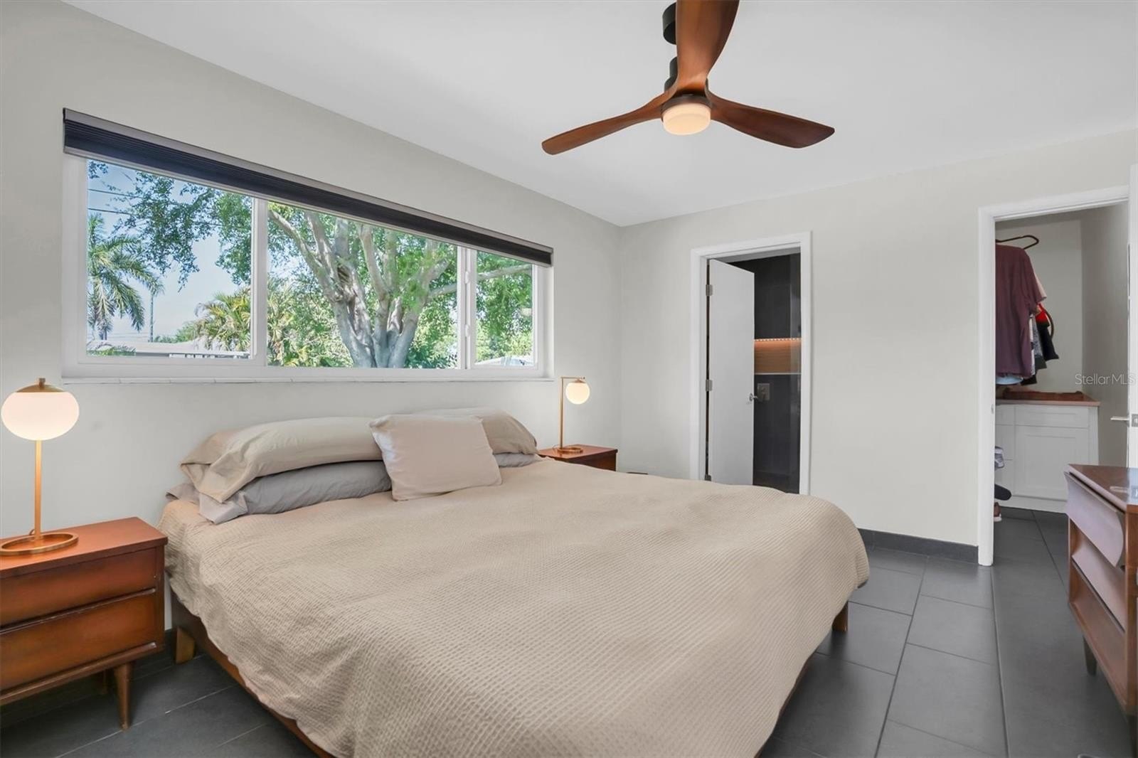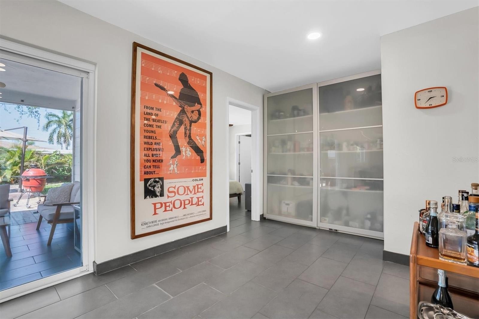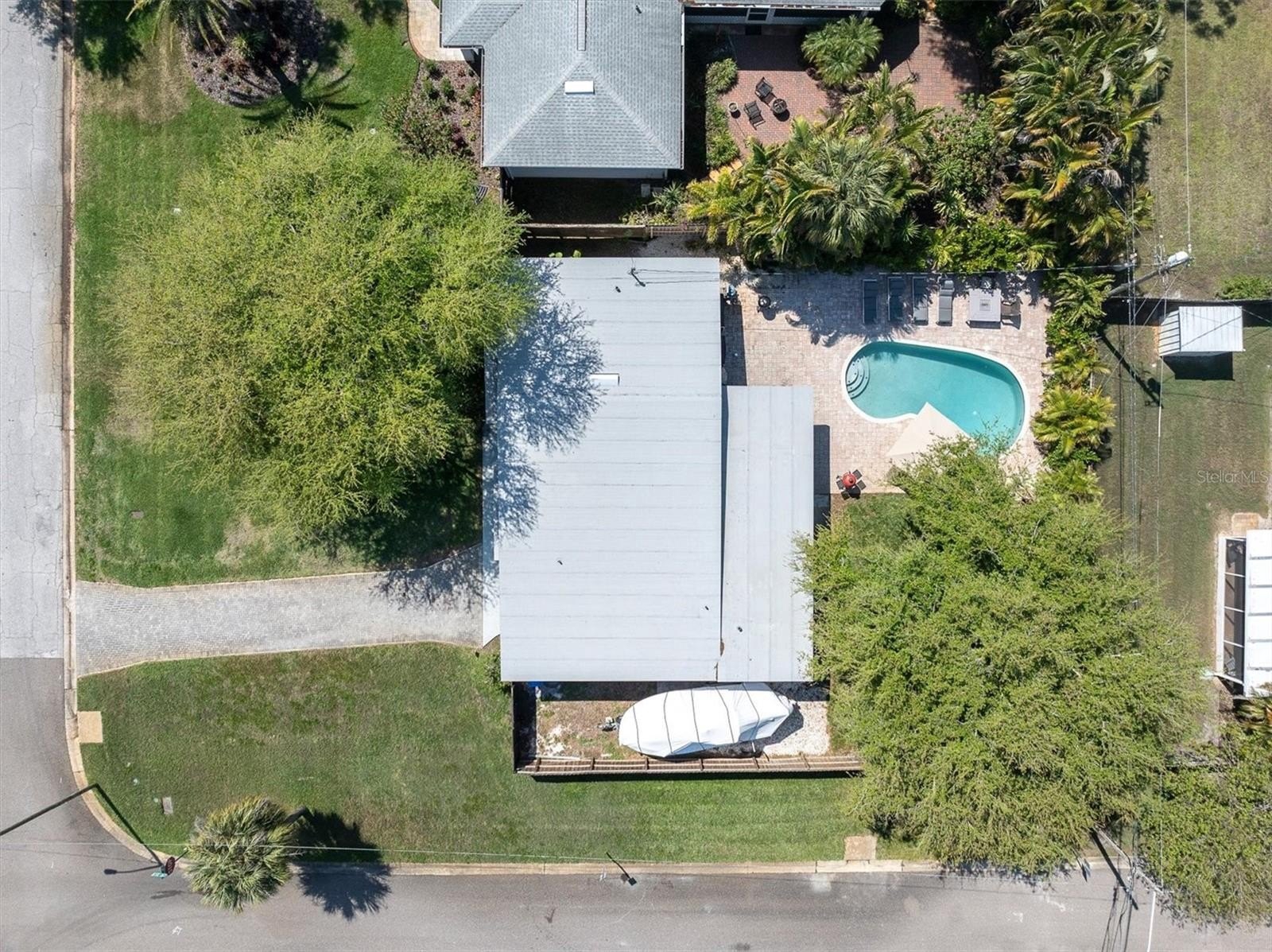 Step into timeless style with this authentic Mid-Century Modern 2-bedroom, 2-bath block home—perfectly blending classic design with today’s must-have updates. Located in a no flood zone and thoughtfully upgraded throughout, this property offers true peace of mind with a new roof (2024), impact-rated windows and sliders, a custom front door, and a 2022 AC system. Situated on a desirable corner lot, the property features a huge fenced yard (2024), mature landscaping, and plenty of space for all your lifestyle needs—including boat or RV parking. The outdoor living is a true highlight, with an expansive paver patio, covered and screened lanai, and a stunning saltwater pool with a 2023 system—perfect for relaxing or entertaining year-round. Inside, the home blends classic design with modern upgrades. The updated kitchen features quartz countertops, Whirlpool Gold Series stainless steel appliances, and generous storage. A spacious living and dining room combo is enhanced by a custom soundproof accent wall with theater lighting, creating a unique and inviting atmosphere. Tile flooring throughout adds durability and a clean, cohesive look. The oversized primary suite is a true retreat, complete with a walk-in closet featuring quartz built-ins and a beautifully updated ensuite bathroom with a double vanity and a sleek glass-enclosed rainfall shower. The second bedroom is generously sized with dual closets, and the home offers ample storage throughout. Additional features include an oversized one-car garage, paver driveway, and a new custom front door that enhances curb appeal. Ideally located just 10 minutes to Treasure Island Beach and 10 minutes to Downtown St. Petersburg, this home offers the perfect combination of character, updates, and convenience.