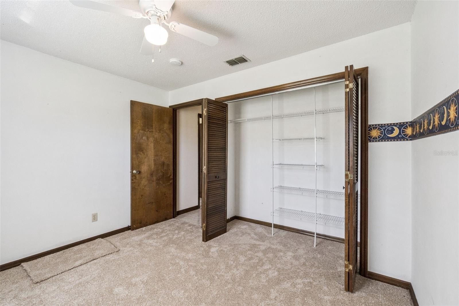 French doors open from the family room to a large, recently updated screened porch, leading to a fenced backyard—perfect for pets. The home is filled with natural light thanks to large French-style windows, complemented by blinds and thermal curtains. Main living areas feature neutral ceramic tile flooring, while all four bedrooms offer brand-new neutral carpet, spacious closets, and ceiling fans with lighting.