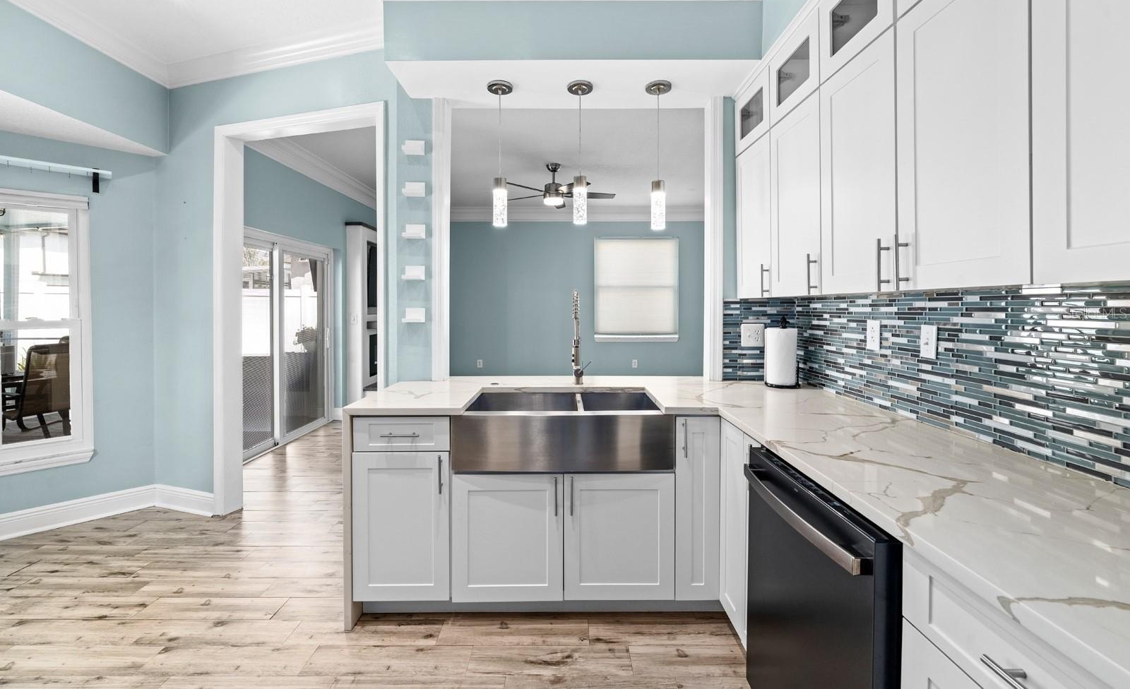 Step outside to your low-maintenance backyard retreat featuring artificial turf, paver walkway, updated irrigation system, and full yard drainage system, offering both beauty and functionality year-round.