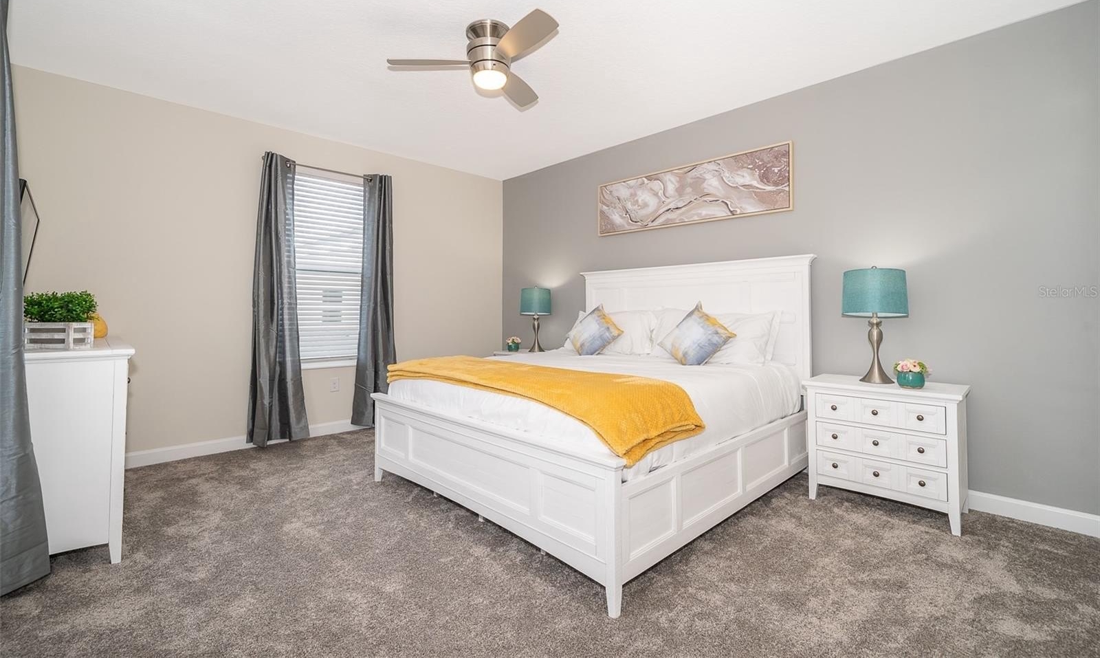 Beautiful 5-bedroom, 5-bathroom vacation home featuring two luxurious owner’s suites, along with a laundry room, loft, and game room. This stunning property is located in the highly desirable Storey Lake Resort, where Central Florida’s major attractions are just minutes away. Walt Disney World is only 5 miles to the west, Lake Buena Vista and Disney Springs are approximately 3 miles to the north, The Loop is about 2.5 miles to the east, and Orlando International Airport is just 15 miles away.