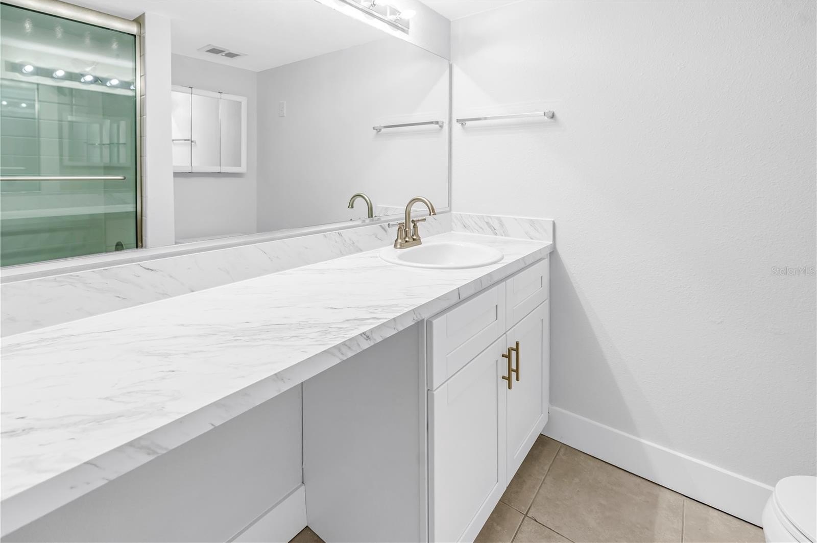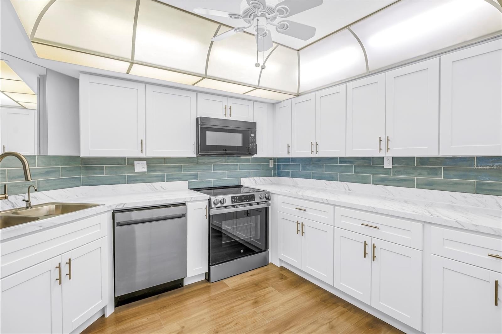 The brand-new kitchen stands out with crisp white cabinetry, elegant countertops, and stainless steel appliances. Both bathrooms have been thoughtfully remodeled with clean, modern finishes. The open layout connects the kitchen, dining, and living areas, creating a bright, welcoming space that’s perfect for everyday living or hosting guests.