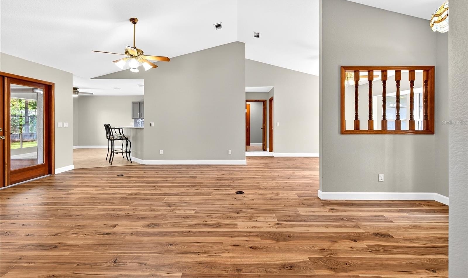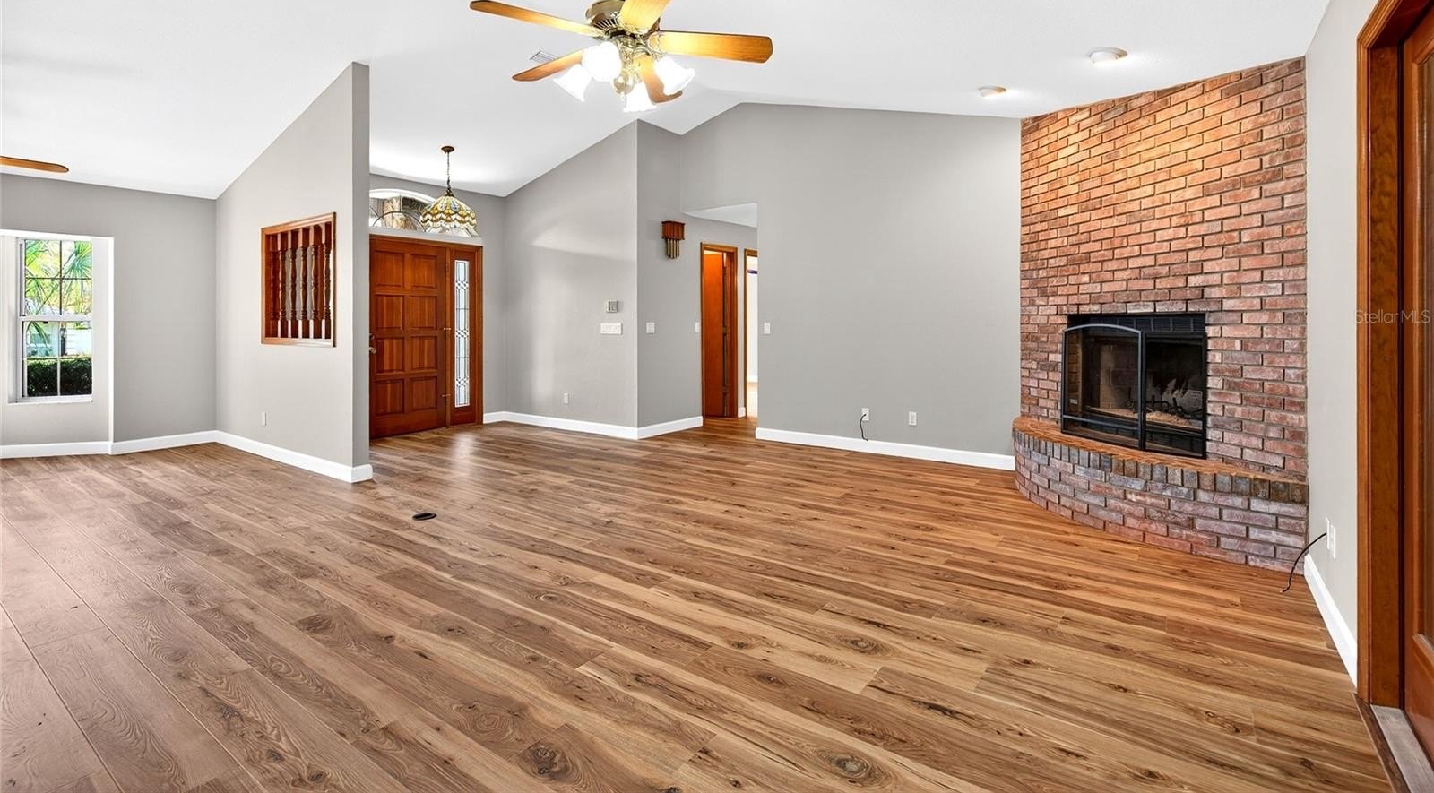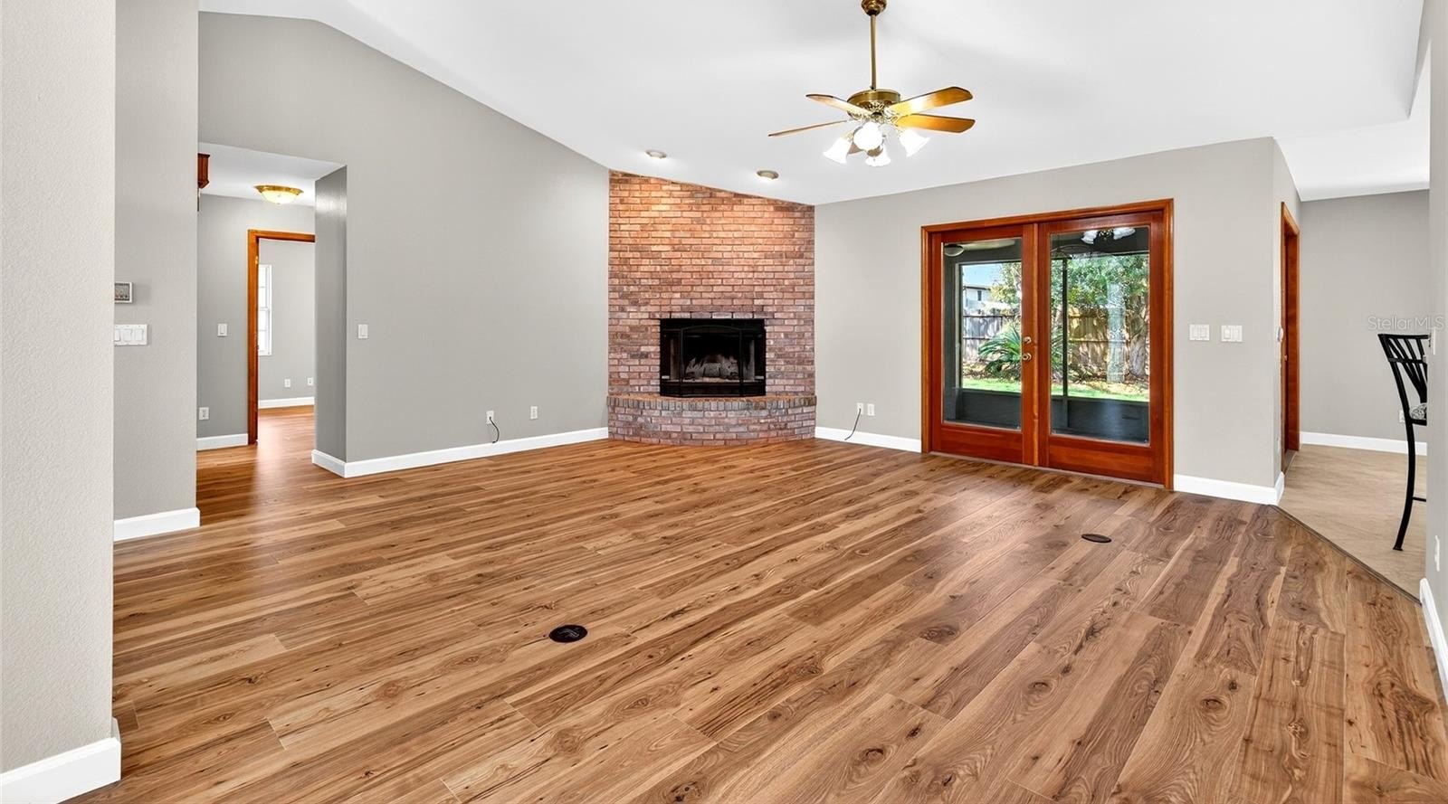 Welcome home to this beautifully updated and maintained home located in the desirable Majestic Oaks neighborhood with low HOA fees! This 3 Bedroom 2 Bath split bedroom home has a fully fenced and private backyard, and is also located on a family friendly cul-de-sac street. As you walk-into the home, you immediately find yourself greeted with a Large open living-room with a beautiful picturesque wood burning fireplace! You also find the recently installed LVP flooring, which is installed throughout the entire home! No carpet here! Continuing through the separate dining room, you find yourself greeted with updated and attractive kitchen with a quartz countertop and a large breakfast nook, with plenty of counter space and cabinets for the whole family. This open kitchen overlooks the living room and through the French doors you can see the backyard and screened in lanai, and is set up for the years to come! The Large Master Suite is next, with that same beautiful LVP floors, and walk-in closet, and an large, updated, en-suite bathroom with a beautiful split vanity and both a walk-in shower and tub for your enjoyment. On the other side of the home, you will find the other 2, large bedrooms, 1 with a walk-in closet, the other with double closets. You will also find the 2nd updated bathroom, with access to the screened in 10ft x 35ft lanai. This lanai includes a functioning sink and counter space, perfect for those summer cookouts! Pair this up with the firepit and pergola in the backyard as well, and you are set for all your hosting needs! The shed out back provided ample space and storage for all your needs as well.