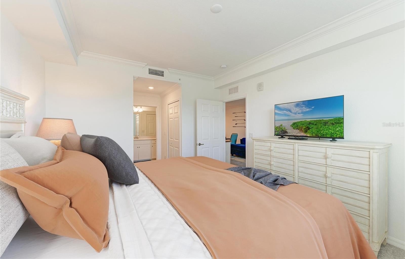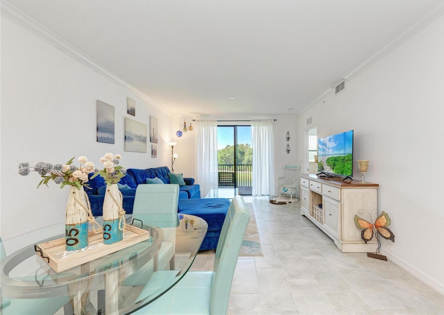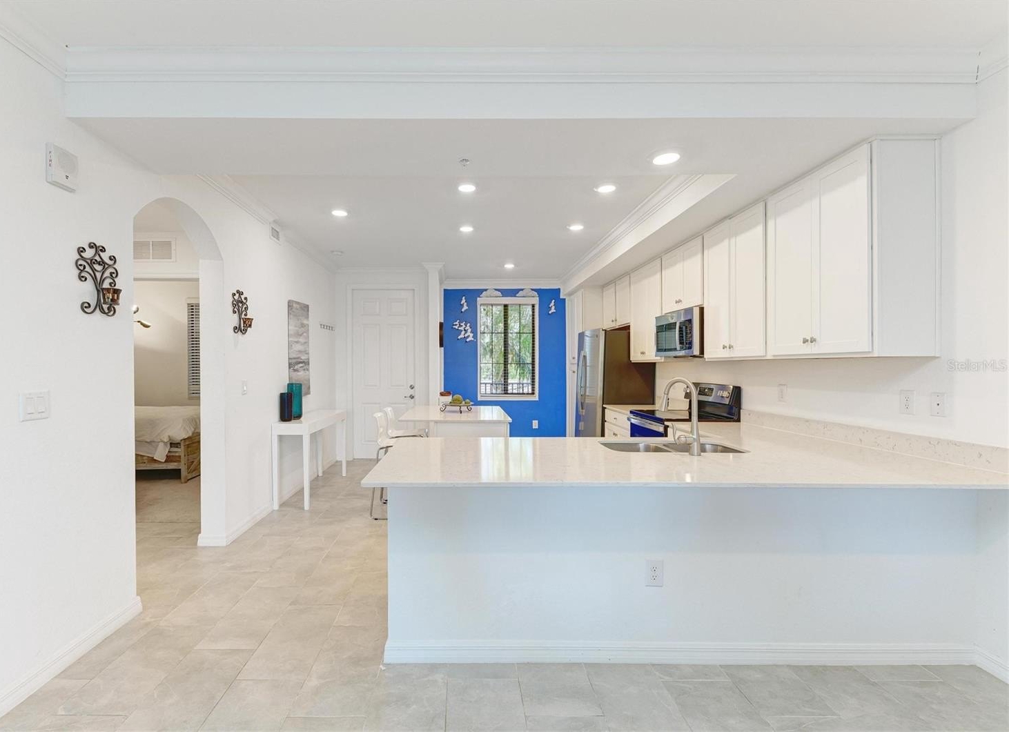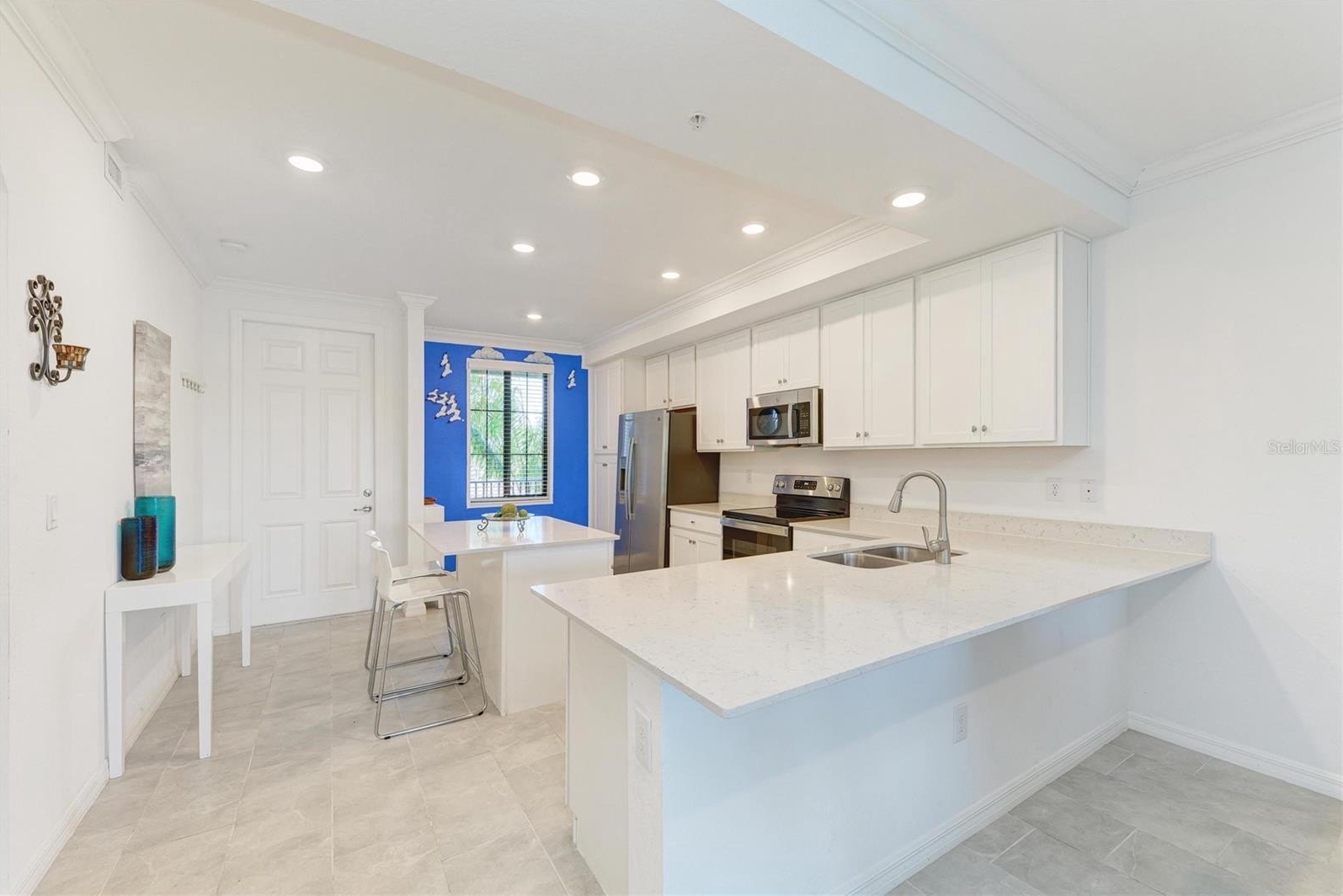 Welcome to this beautifully appointed second-floor 2-bedroom, 2-bath condo in the highly sought-after Lakewood National community of Lakewood Ranch, FL. Built in 2022 and offered turnkey furnished, this residence is truly move-in ready—perfect as a full-time home, seasonal retreat, or investment opportunity. Step inside to a thoughtfully designed open-concept floor plan that blends comfort and modern elegance. The kitchen is both stylish and functional, featuring sleek cabinetry, granite countertops, stainless steel appliances, and a spacious island with bar seating—perfect for casual dining or entertaining guests. The kitchen flows seamlessly into the dining and living areas, where natural light pours in through sliding glass doors, creating a bright and inviting atmosphere. The living room is tastefully furnished with a clean, contemporary feel, offering a relaxing space to unwind while enjoying uninterrupted views of the pond and golf course beyond. The primary suite is a peaceful retreat, complete with a large window that captures the scenic surroundings, two walk-in closets, and an en-suite bath featuring dual sinks and a walk-in shower. The second bedroom is equally inviting, ideal for guests or a home office, with easy access to the second full bathroom. Additional features include in-unit laundry, modern finishes throughout, and neutral tones that complement any décor style. Step out onto the private screened patio to take in the stunning water and golf course views—your own serene escape where you can relax and enjoy Florida’s natural beauty year-round. This home offers not only stunning views but also access to an unparalleled resort-style lifestyle. Lakewood National features two championship Arnold Palmer-designed golf courses, a grand clubhouse, state-of-the-art fitness center, full-service spa, tennis and pickleball courts, resort-style pools with lap lanes, poolside dining, and a vibrant social calendar filled with events and activities. Residents enjoy a maintenance-free lifestyle, allowing more time to relax, connect, and enjoy the surroundings. Whether you’re an avid golfer, a fitness enthusiast, or simply someone who appreciates serene views and an active, social community, this condo offers the perfect blend of luxury, convenience, and Florida living at its finest.