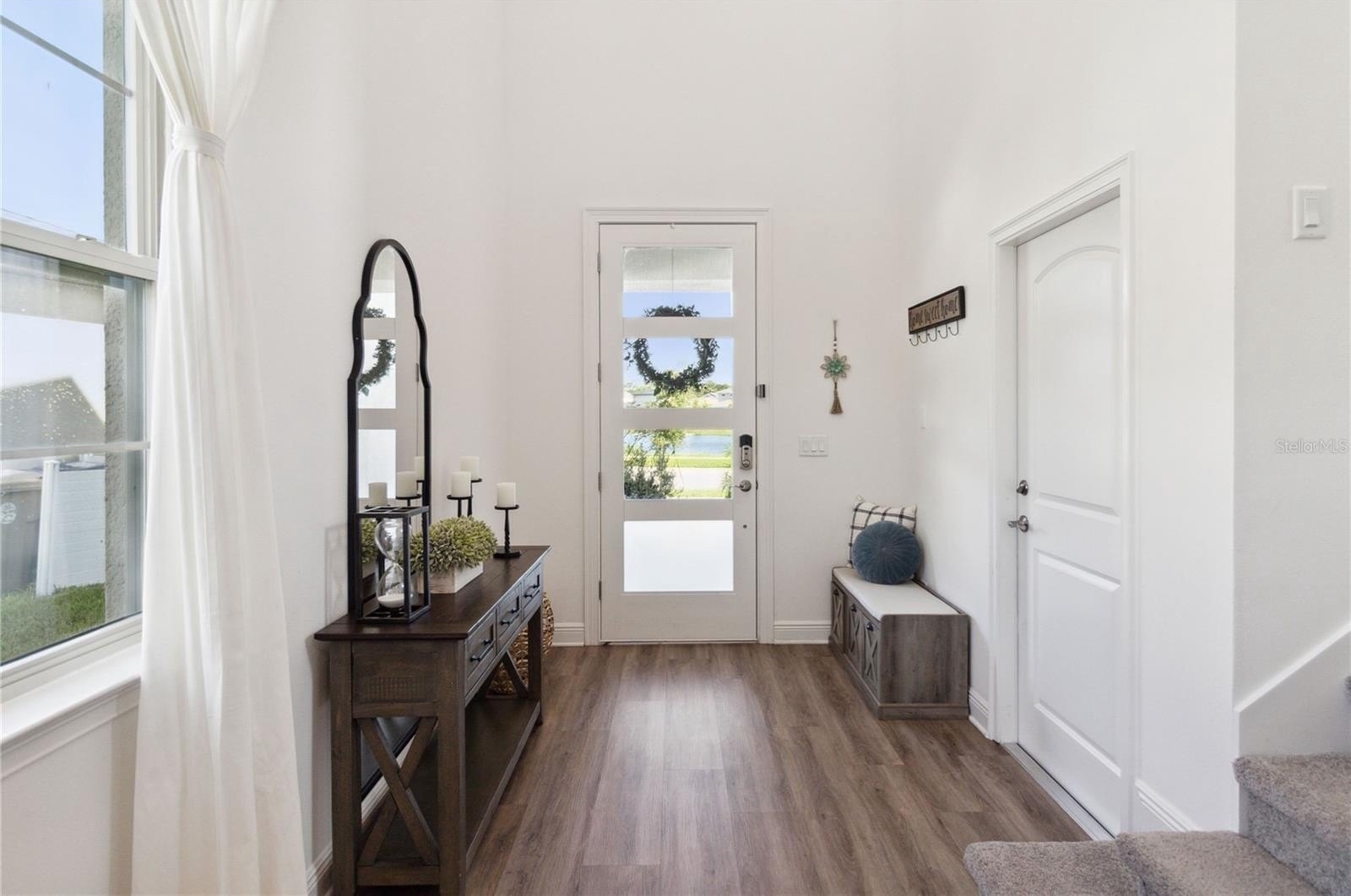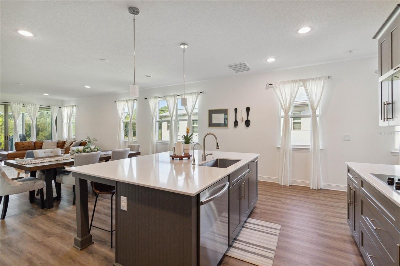 Natural light pours into the home through large windows and expansive sliding glass doors, leading to a serene screened-in lanai. Enjoy peaceful outdoor living with a spacious, private backyard and no neighbors in the front or rear—providing rare privacy and tranquility.