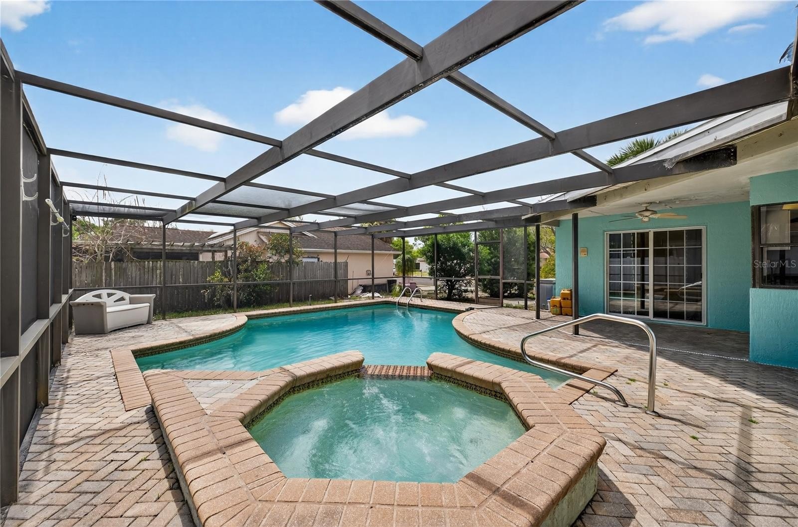 Opportunity knocks! This 3-bedroom, 2-bathroom block home with a 2-car garage is ideally situated on a spacious corner lot in a non-flood zone—offering both value and peace of mind. Whether you're a first-time homebuyer ready to build equity or an investor searching for your next rental opportunity, this property delivers strong potential at an affordable price point. The home features a functional layout with great bones, ready for your personal touch and updates. Step outside to your private backyard retreat—complete with a screened-in pool enclosure, sparkling pool, and a relaxing waterfall spa. This outdoor space has the potential to become a true highlight for entertaining or unwinding year-round. Location adds even more appeal—situated less than 3 miles from a Gulf access boat ramp and waterfront park, offering easy access to boating, fishing, and enjoying Florida’s coastal lifestyle. Major bonus: the seller is willing to replace the roof prior to closing with an acceptable offer, helping reduce upfront expenses and adding long-term value. With solid block construction, desirable lot placement, and no flood insurance required, this property is a smart buy with upside. Bring your vision and make it your own—whether you're looking to create your dream home or secure a strong investment.