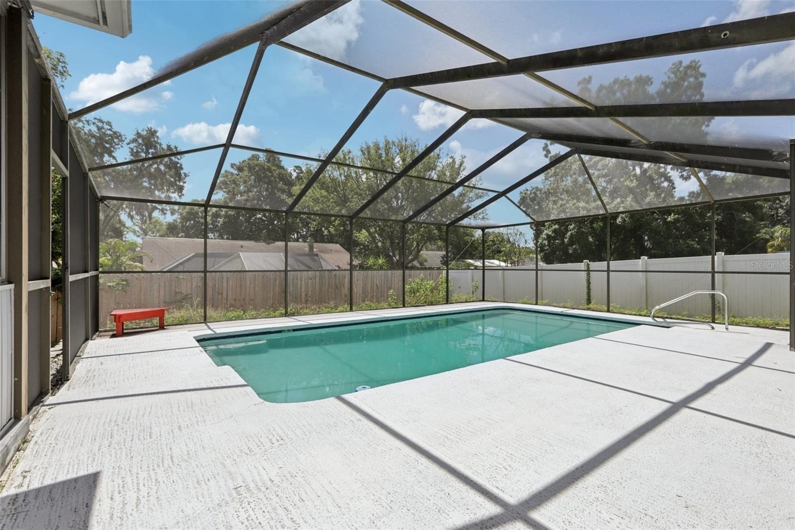 This stunning 3/2 home is in a community with no HOA/CDD. The home has been thoughtfully remodeled with quality products. The kitchen is exquisite with quartz countertops, new appliances and a beautiful farm sink. The utility room features quartz countertops and a beautiful wine refrigerator. The bathrooms have also been remodeled. Newly painted throughout and tastefully chosen luxury vinyl floors. Other benefits include (2023) a new rew roof, resurfaced pool and privacy fencing on this spacious lot. There are two screened ares and large bonus room with abundant storage .home is ready for you to move in and enjoy! With a new roof (2023), double-pane windows offering natural light throughout the home, and a freshly resurfaced pool, new screens and many major updates have already been taken care of. The partially open floor plan is ideal for entertaining, featuring a newly remodeled kitchen with quartz countertops and island, soft-close cabinets, a counter-depth fridge, a farmhouse sink, and plenty of counter space. The primary and hall bathrooms have been remodeled. The master bedroom includes sliding doors leading to the pool and a custom walk-in closet. Enjoy a dedicated Laundry Room with countertop, cabinets and under-counter refrigerator. Luxury vinyl flooring, freshly painted walls and ceilings, and a new privacy fence complete the 2023 renovations. In 2024 the attic was cleaned and re-insulated. Lake amenity access and boat ramps are available for a nominal annual fee. The home is not in a flood zone, this home is located near major highways and essential amenities, providing a convenient and serene lifestyle.