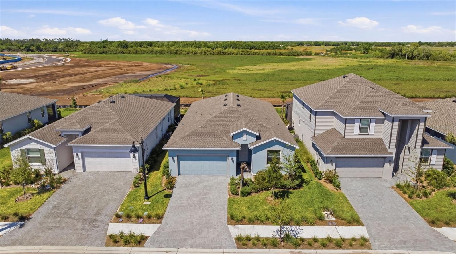 One or more photo(s) has been virtually staged. Welcome to this beautifully designed single-story home in the highly sought-after Rye Ranch community in Parrish. This spacious 3-bedroom, 3-bath plus flex room home offers over 2,200 square feet of thoughtfully designed living space with a desirable open floor plan perfect for both everyday living and entertaining. The split-bedroom layout provides privacy and functionality, featuring a primary suite with dual walk-in closets, while Bedroom 2 offers its own en-suite bath, ideal for guests or multigenerational living. Bedroom 3 also includes a walk-in closet for added storage. A versatile flex room with French doors creates the perfect space for a home office, den, or media room. The heart of the home showcases a seamless flow between the kitchen, dining, and great room, all enhanced by tile flooring throughout. Step outside to enjoy Florida living year-round on the covered, screened-in lanai. Additional highlights include an interior laundry room with utility sink and a 2-car garage. Rye Ranch is a growing master-planned community designed for an active and connected lifestyle. Rye Ranch HOA fees cover your lawn care, irrigation, and amenities. Planned amenities are expected to include a resort-style pool, splash pad, clubhouse, pickleball courts, fire pits, tot lot, e-bike rentals, and more—adding to the neighborhood’s appeal and future value. Residents also benefit from nearby parks, walking trails, and convenient access to shopping, dining, and major roadways.