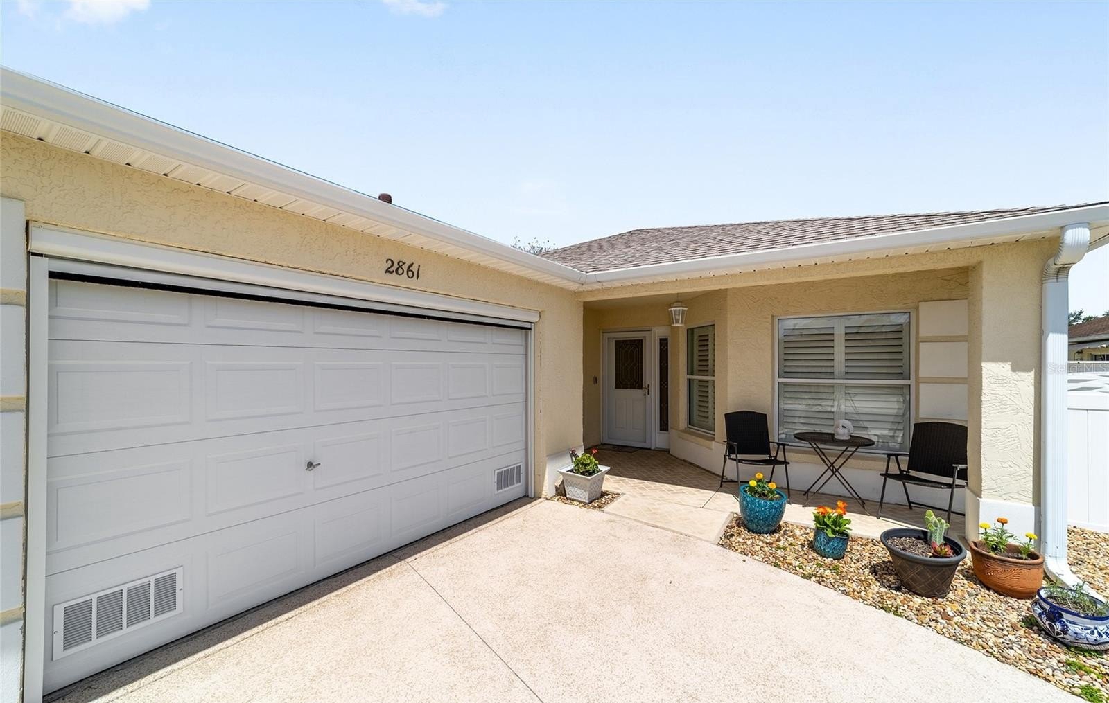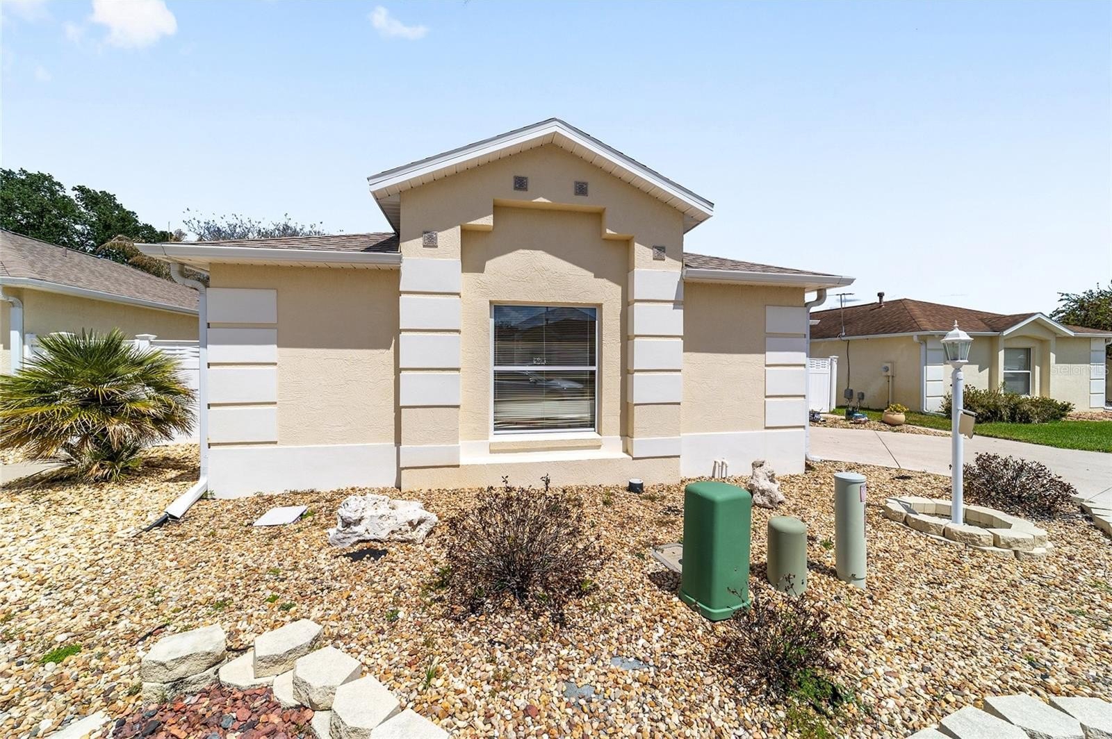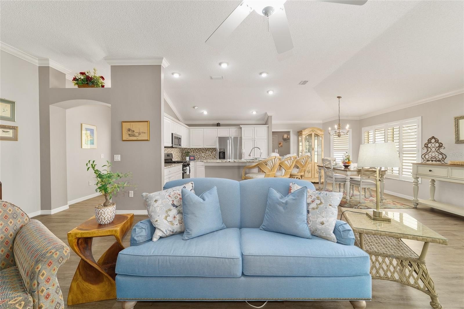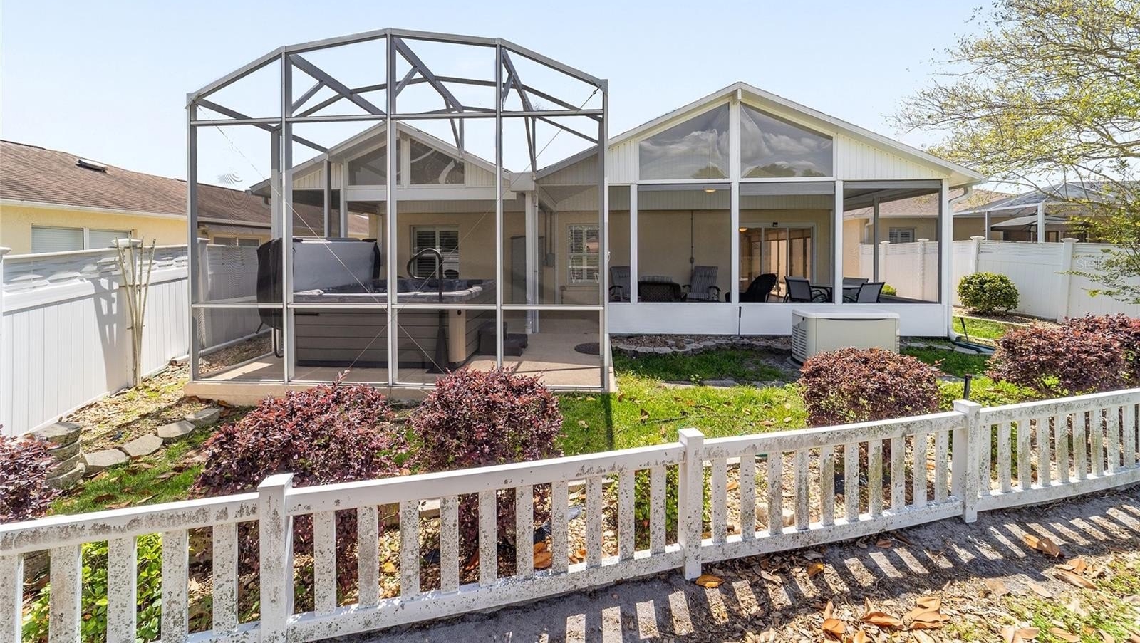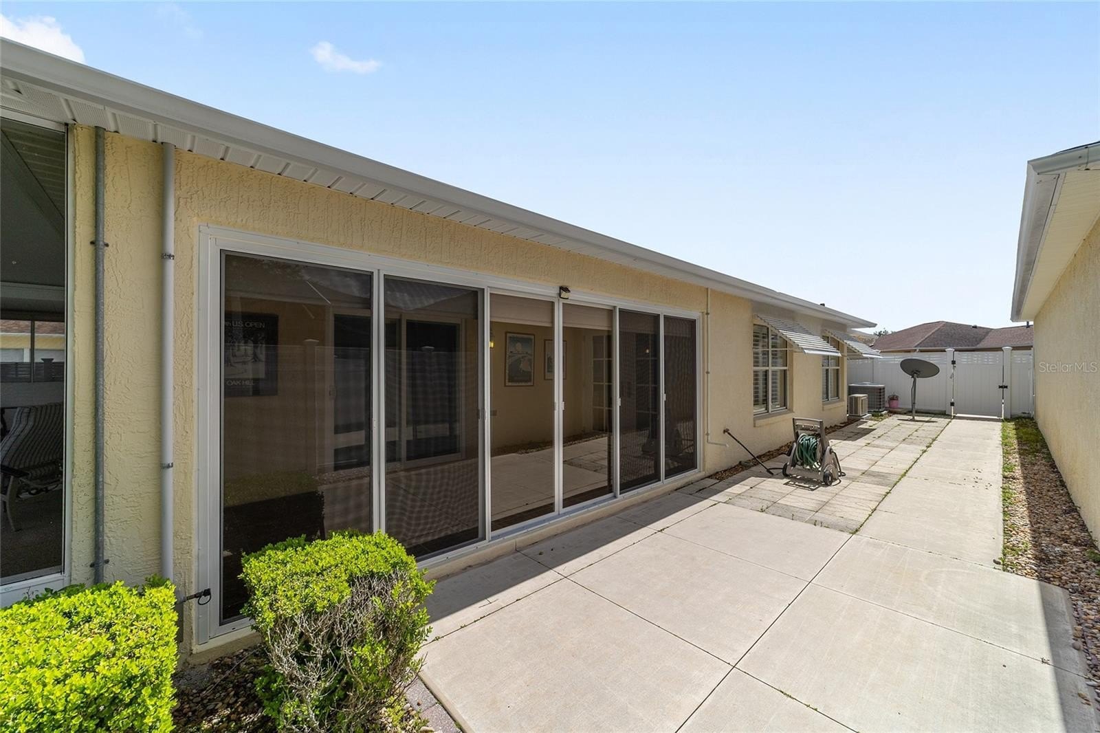 TURNKEY AND BOND IS PAID! This lovely block and stucco Grantham courtyard villa is located in Belmont Villas in The Village of Belvedere. It is a 3/2 with a climate controlled enclosed lanai and a large screened lanai with a roof on the golf course with a Premier Care Walk-In Jacuzzi Tub (AS-IS). The flooring is all luxury vinyl plank. As you enter the home you will notice the vaulted ceilings with crown molding and an open floor plan. This home is being sold Turnkey to include all furniture and furnishings in the home with the exception of items with a green sticker and some staging items. This home also has plantation shutters, a fireplace in the living room and granite in the kitchen and both bathrooms. The kitchen has stainless steel appliances, a tiled backsplash, white cabinets with pull outs and a gas range. There is also a granite breakfast bar to enjoy your morning coffee. The dining room has a lovely table with 6 chairs and matching sideboard. The primary bedroom has a queen sized bed with a dresser and chest. There is also a walk-in closet and a large bathroom with granite counters and tiled step-in shower. The guest bedroom has a full bed with a dresser, 2 nightstands and a TV mounted on the wall. The third bedroom could be used as an office, there are storage cabinets and a TV. Both guest rooms have built-in closets. The guest bathroom has granite counters and an upgraded shower. Both bathrooms have a bidet. There is a linen closet in the hallway. The laundry room has a newer washer and dryer and is located inside the home. Items in the garage do not convey, except for the Pelican Water Filtration System and the gas golf cart, included AS-IS! The garage has an epoxy flooring and has a remote controlled screen door. There is a 2019 GENERAC generator, 2020 Roof, 2018 HVAC and water heater is original. Taxes $3,884.32, Maint $261.78, Fire $320.71 and bond is paid!