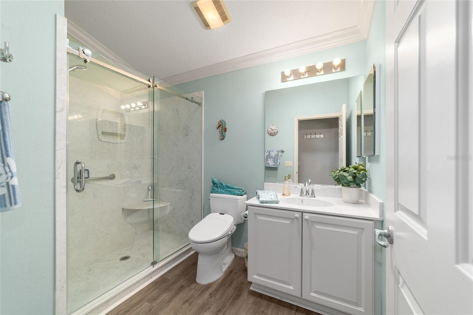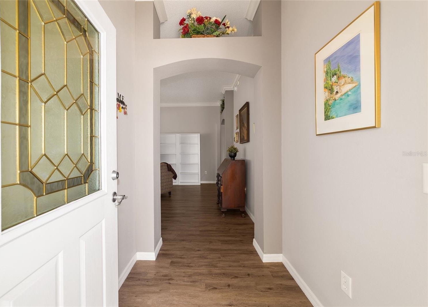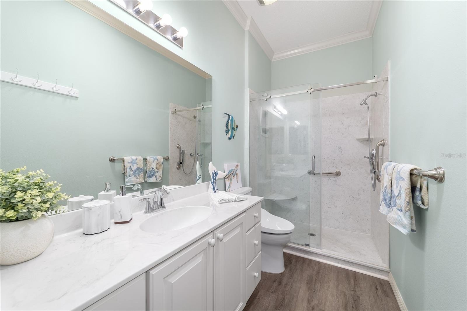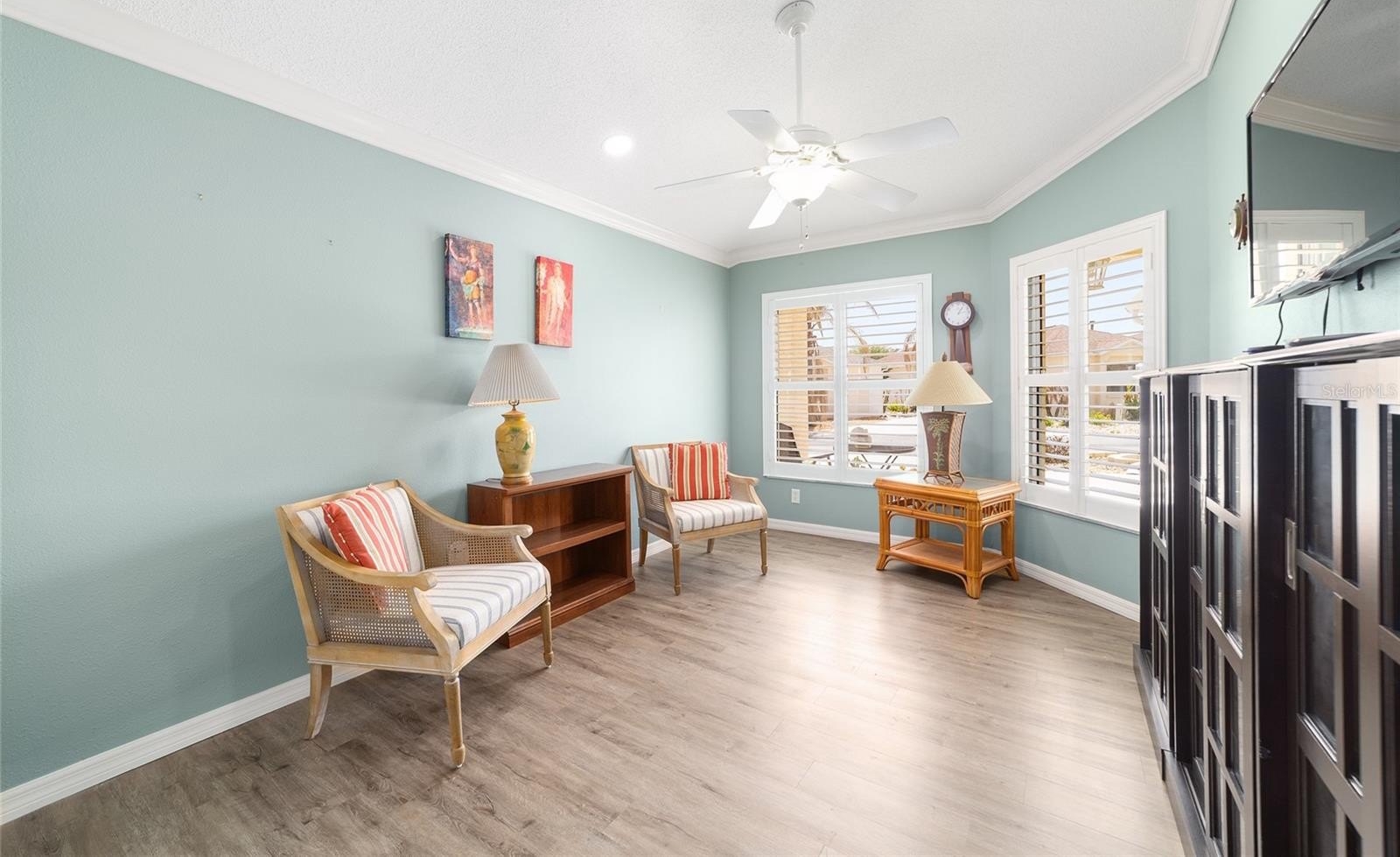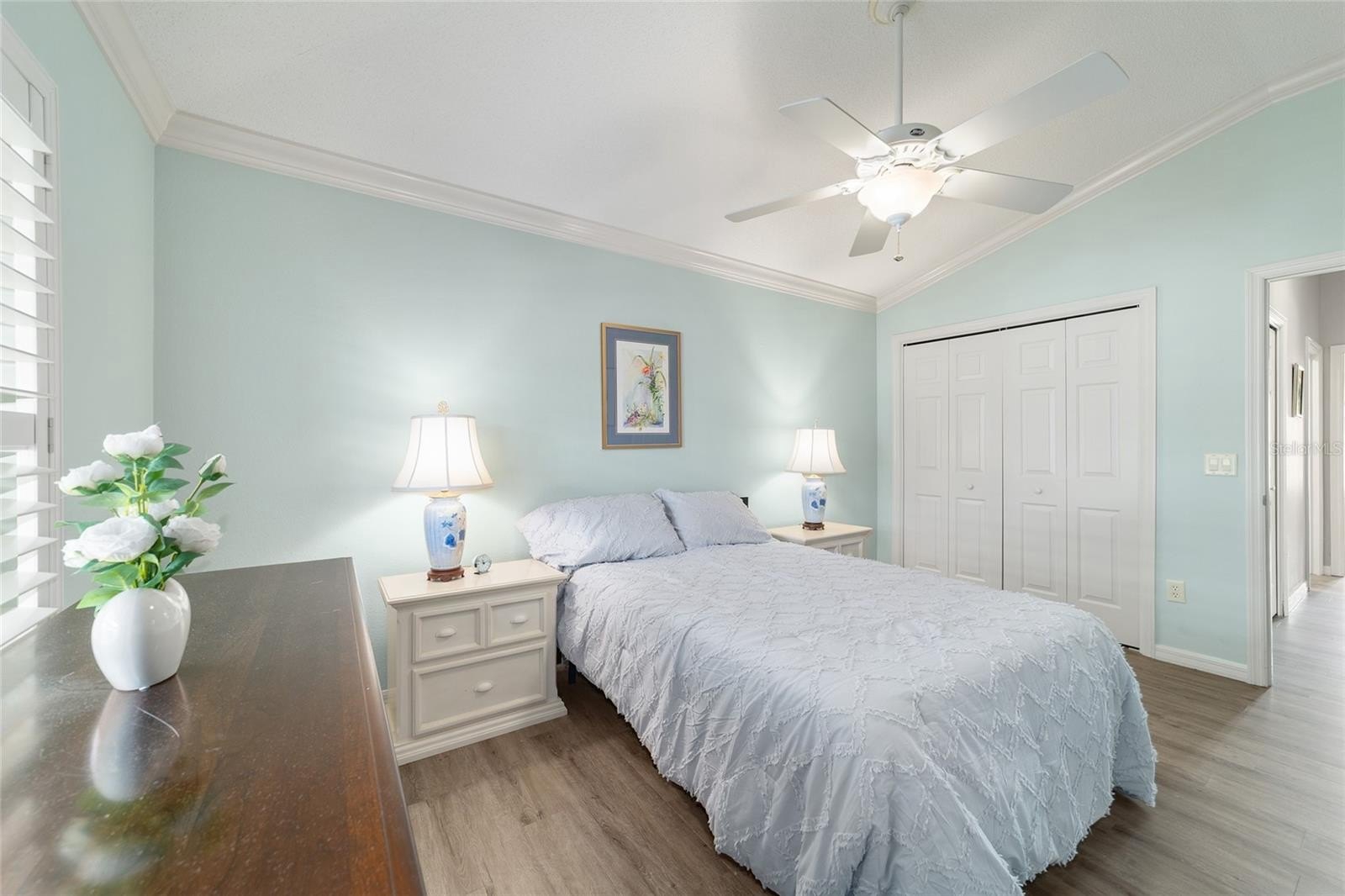 TURNKEY AND BOND IS PAID! This lovely block and stucco Grantham courtyard villa is located in Belmont Villas in The Village of Belvedere. It is a 3/2 with a climate controlled enclosed lanai and a large screened lanai with a roof on the golf course with a Premier Care Walk-In Jacuzzi Tub (AS-IS). The flooring is all luxury vinyl plank. As you enter the home you will notice the vaulted ceilings with crown molding and an open floor plan. This home is being sold Turnkey to include all furniture and furnishings in the home with the exception of items with a green sticker and some staging items. This home also has plantation shutters, a fireplace in the living room and granite in the kitchen and both bathrooms. The kitchen has stainless steel appliances, a tiled backsplash, white cabinets with pull outs and a gas range. There is also a granite breakfast bar to enjoy your morning coffee. The dining room has a lovely table with 6 chairs and matching sideboard. The primary bedroom has a queen sized bed with a dresser and chest. There is also a walk-in closet and a large bathroom with granite counters and tiled step-in shower. The guest bedroom has a full bed with a dresser, 2 nightstands and a TV mounted on the wall. The third bedroom could be used as an office, there are storage cabinets and a TV. Both guest rooms have built-in closets. The guest bathroom has granite counters and an upgraded shower. Both bathrooms have a bidet. There is a linen closet in the hallway. The laundry room has a newer washer and dryer and is located inside the home. Items in the garage do not convey, except for the Pelican Water Filtration System and the gas golf cart, included AS-IS! The garage has an epoxy flooring and has a remote controlled screen door. There is a 2019 GENERAC generator, 2020 Roof, 2018 HVAC and water heater is original. Taxes $3,884.32, Maint $261.78, Fire $320.71 and bond is paid!