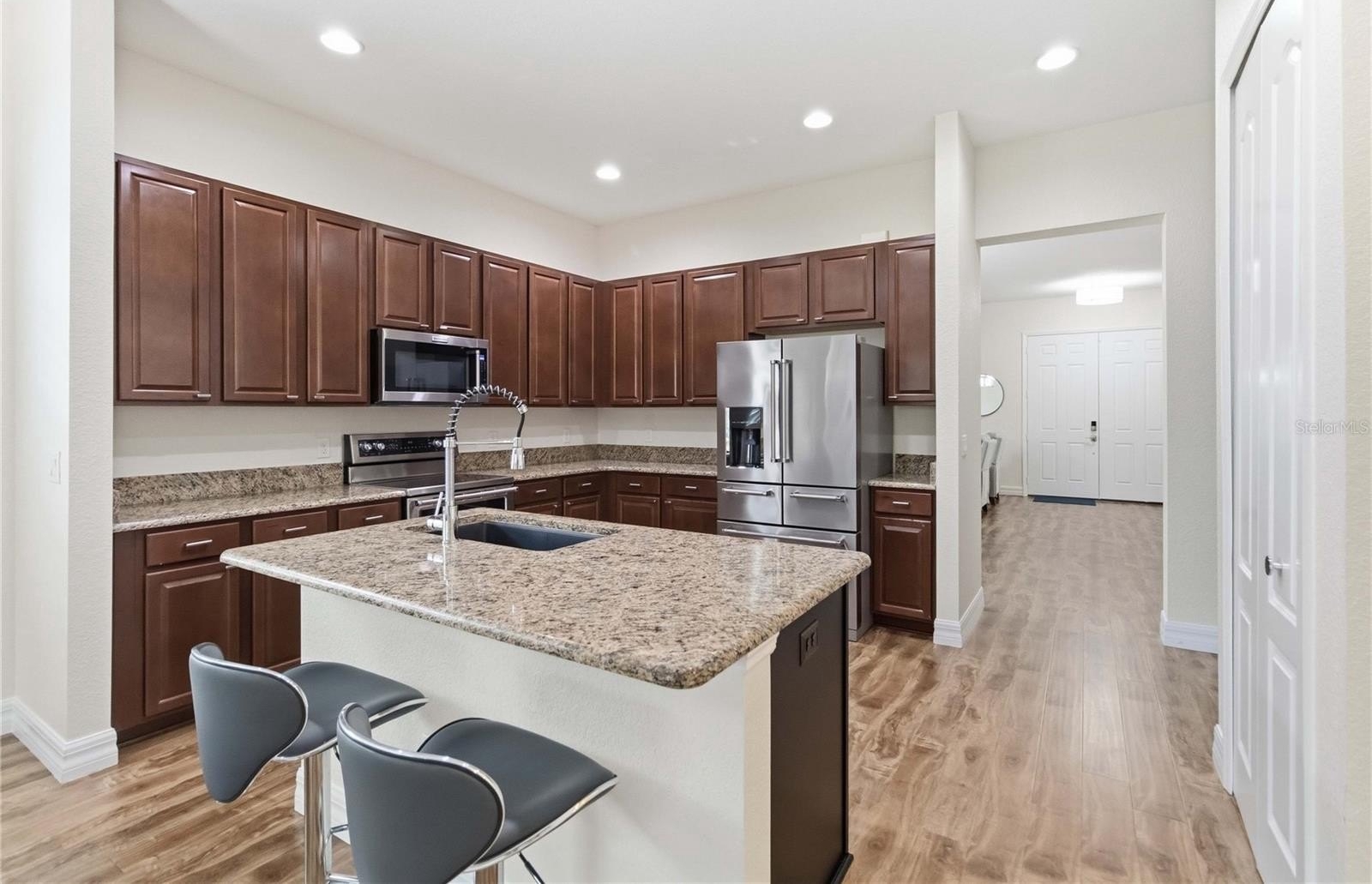 Don't miss this stunning 3 bedroom 2 bath home in the gated Chatsworth within the golf course community of Eagle Creek. This home has all the right upgrades with engineered Hardwood, tile in the bathrooms, Spanish Tile roof, and an Iron fence for your pet. The kitchen has a warm open feel with upgraded stainless appliances, granite counters, and a large center island for entertaining. Feel the extra security with a gated within a gate as well as staffed 24 hour security. The amazing amenity center has everything could want for your resort style living in Central Florida at the heart of Lake Nona, the Medical City. You are just a couple of minutes from the 417 for ease to Theme Parks, Downtown Orlando, or any of the Central Florida attractions. Enjoy the amazing restaurants and shopping that Lake Nona offers just minutes from the front gate!