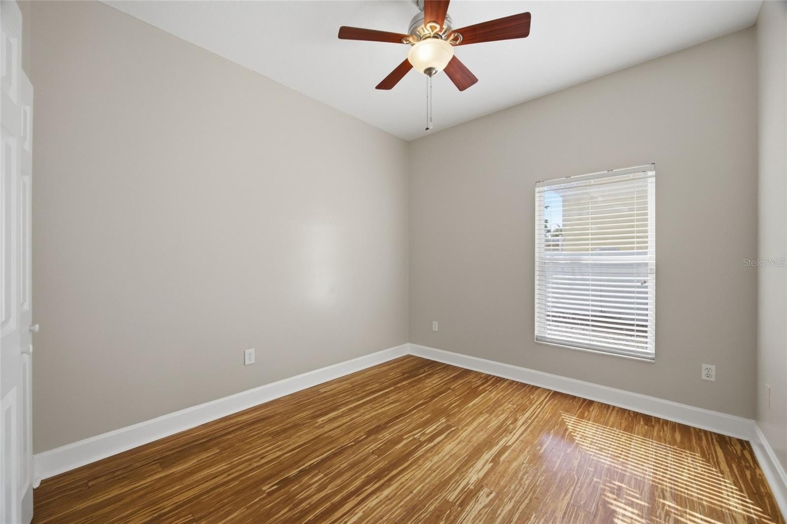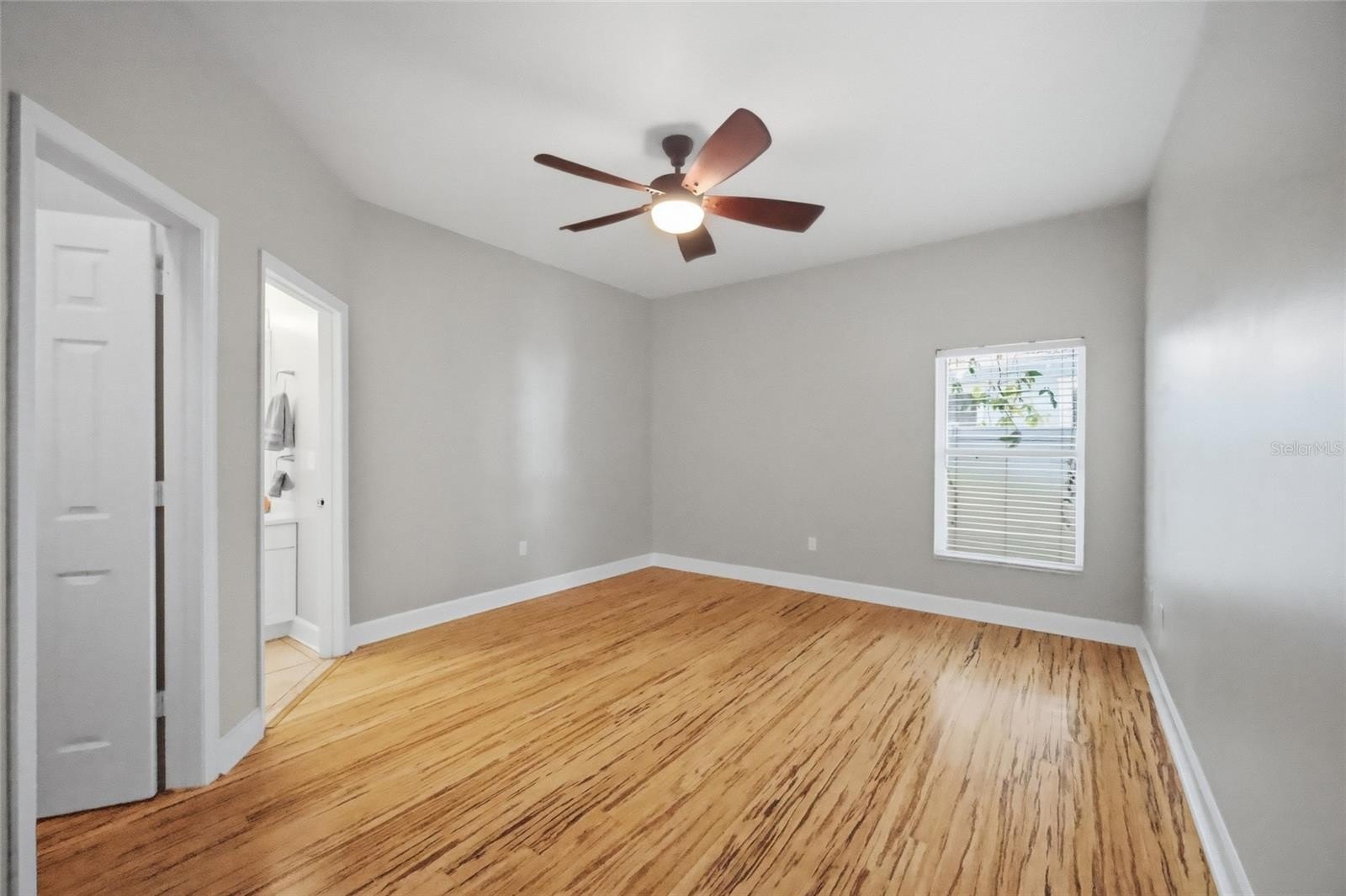 The interior has been tastefully refreshed, featuring a renovated kitchen with quartz countertops, updated cabinetry, designer backsplash, upgraded plumbing fixtures, and Samsung Bespoke appliances. Hardwood bamboo flooring flows throughout the main living areas, adding warmth, durability, and a modern aesthetic. The bathrooms showcase travertine vessel sinks and updated finishes, while fresh interior paint and abundant electrical outlets support modern living and home office setups.