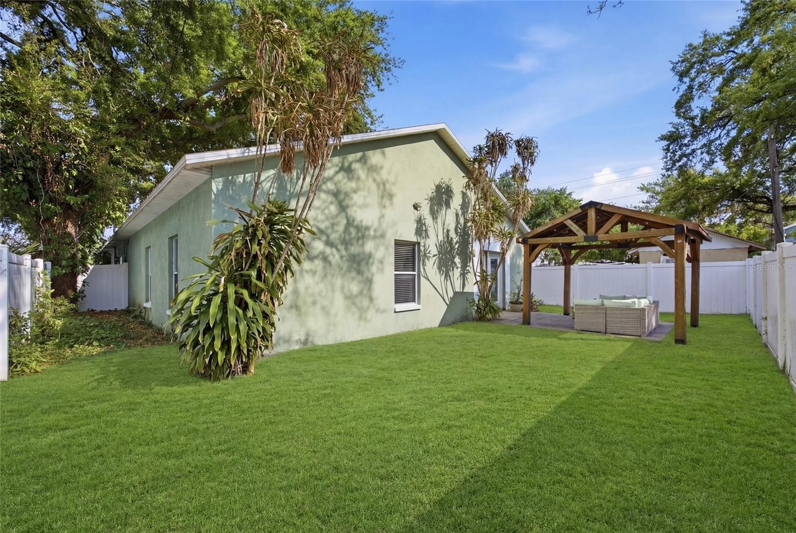 Outdoor improvements elevate the property further. Premium vinyl fencing provides privacy and separates mechanical systems from the yard — ideal for children and pets. A pergola with paver flooring creates a low-maintenance outdoor entertaining area, while fresh sod and new plant beds complete the front landscape refresh.