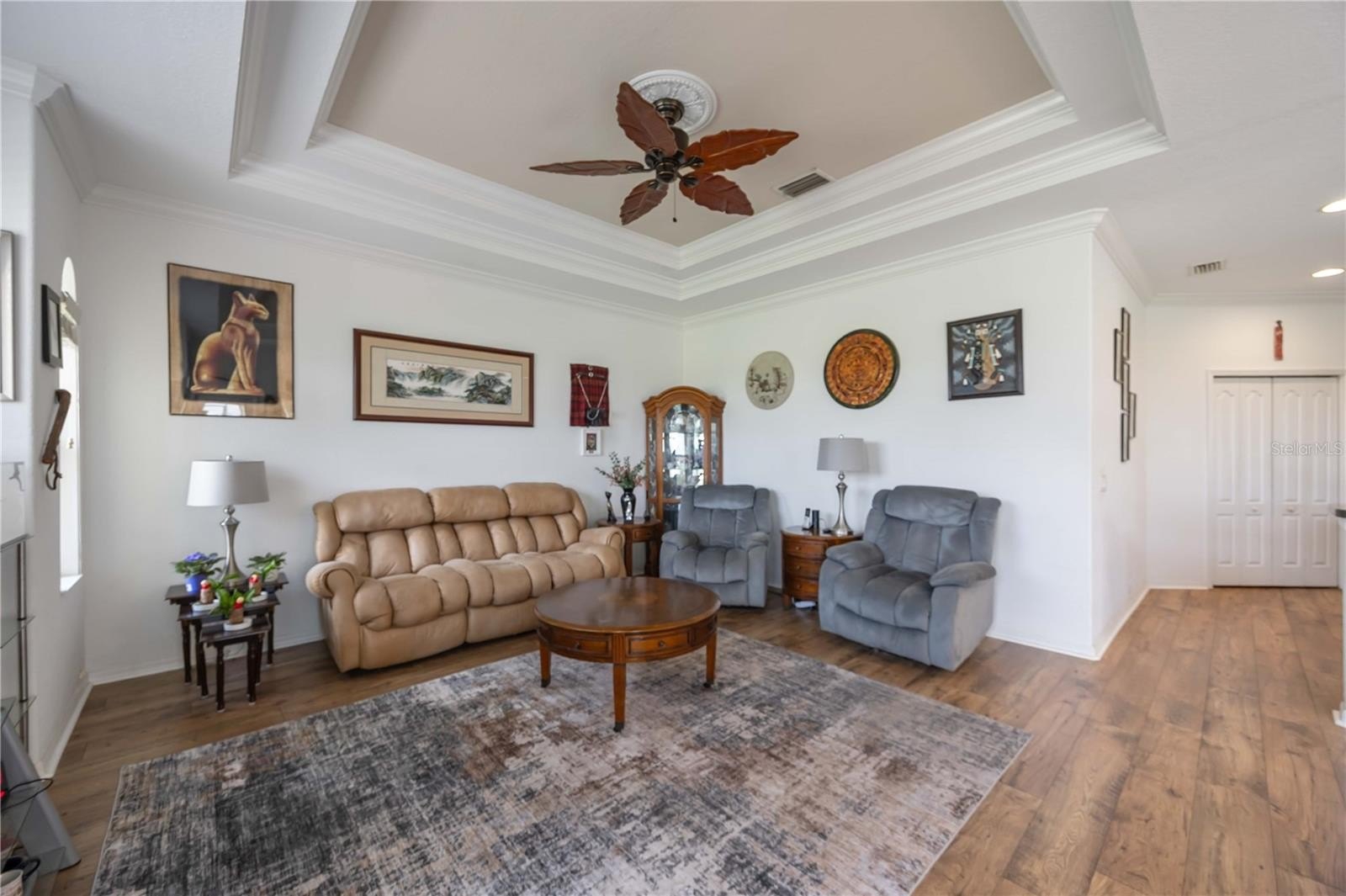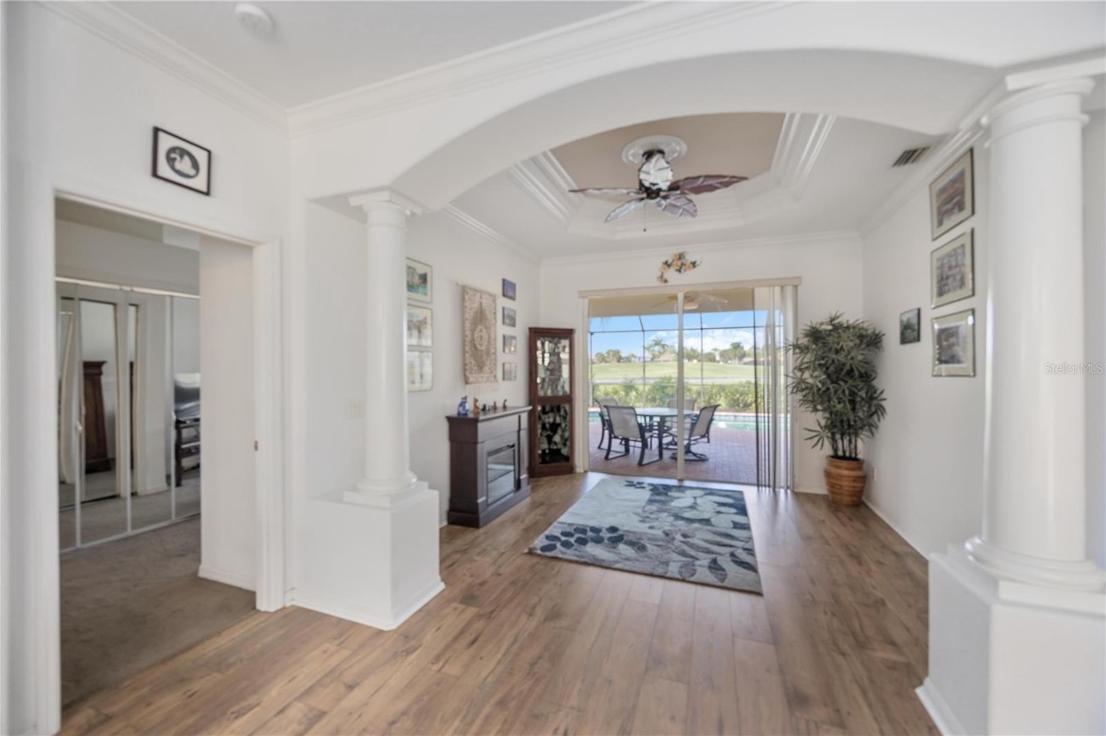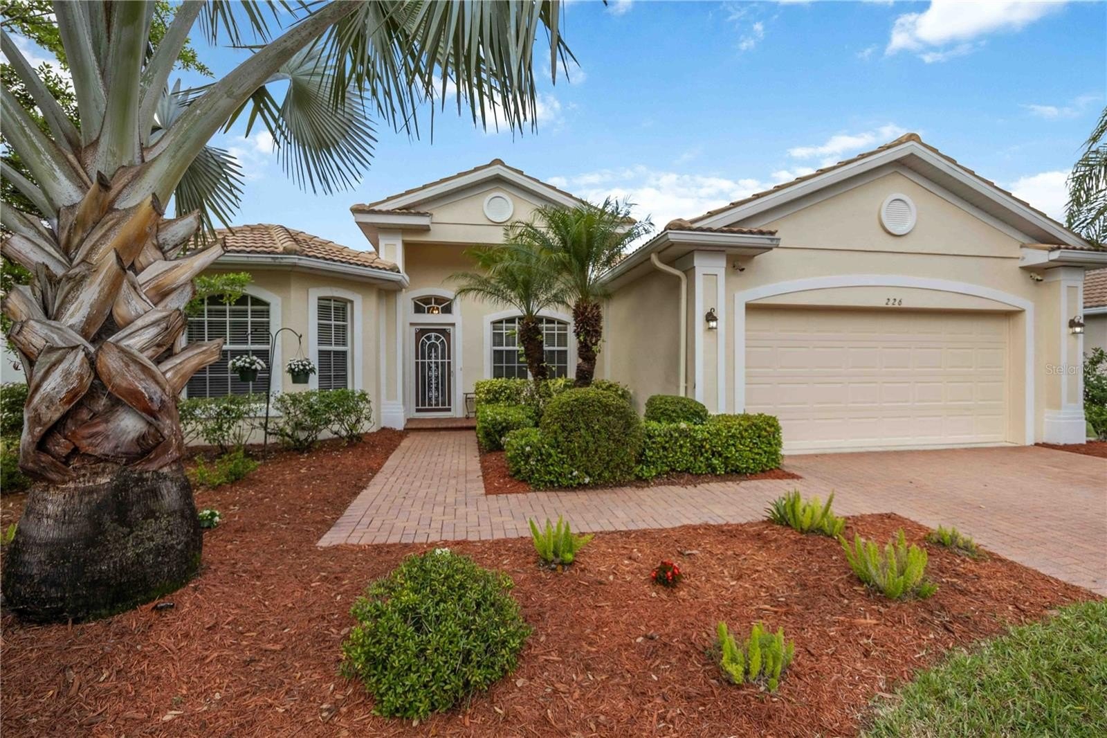 Welcome to this lovely 3 BR, 2 BA plus office Pool Home behind the sought-after gates of Stoneybrook at Heritage Harbour Golf Course Community! This Golf Community offers an Exceptional Lifestyle with non mandatory golf memberships and wonderful amenities! Open concept design boasts crown molding and tray ceilings throughout. Step into this home and enjoy the view of your own pool and the golf course. The kitchen and living areas flow effortlessly, making this home ideal for entertaining with generous family room, formal living room and dining room. Great kitchen with center island, breakfast nook, SS appliances and breakfast bar. Retire to your Primary suite with sliders to pool, walk in closet and en suite bathroom with dual sinks. 2 more spacious spare bedrooms share a full bath. Newer wood floors throughout much of living area! New AC compressor and ductwork. Home also has hurricane shutters and barrel tile roof! Utility room offers sink, cabinets and washer & dryer. Relax in your own private oasis with pool and generous undercover area. Plenty of room for entertaining too with pavered deck. Live like you're on vacation all year long in this fabulous Resort Community with Heritage Harbour Golf and Eatery with 18 hole golf course and no mandatory golf fees! Pay as you play or memberships are available! Spend time at the heated pools, spa, splash pool, pickleball/tennis courts, active clubhouse, fitness center, beach volleyball, basketball courts, bocce ball, corn hole, dog parks, playgrounds and picnic areas! The active rec center hosts events such as Trivia nights, art shows, poolside movies, potluck dinners and more! Also 2 mile trail around scenic lake. So much for such low HOA fees! Easy access to the New Heritage Harbour Market Place with lots of shopping and restaurants! Stoneybrook is close to the beautiful beaches of Anna Maria Island, Siesta Key, downtown Sarasota and Lakewood Ranch, restaurants and shopping, I75, Tampa, St Pete and airports! Welcome to Paradise! Note: CDD fee is in the tax figure