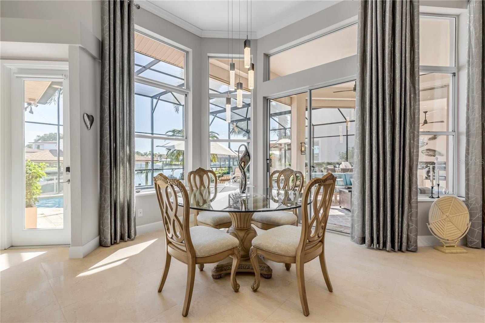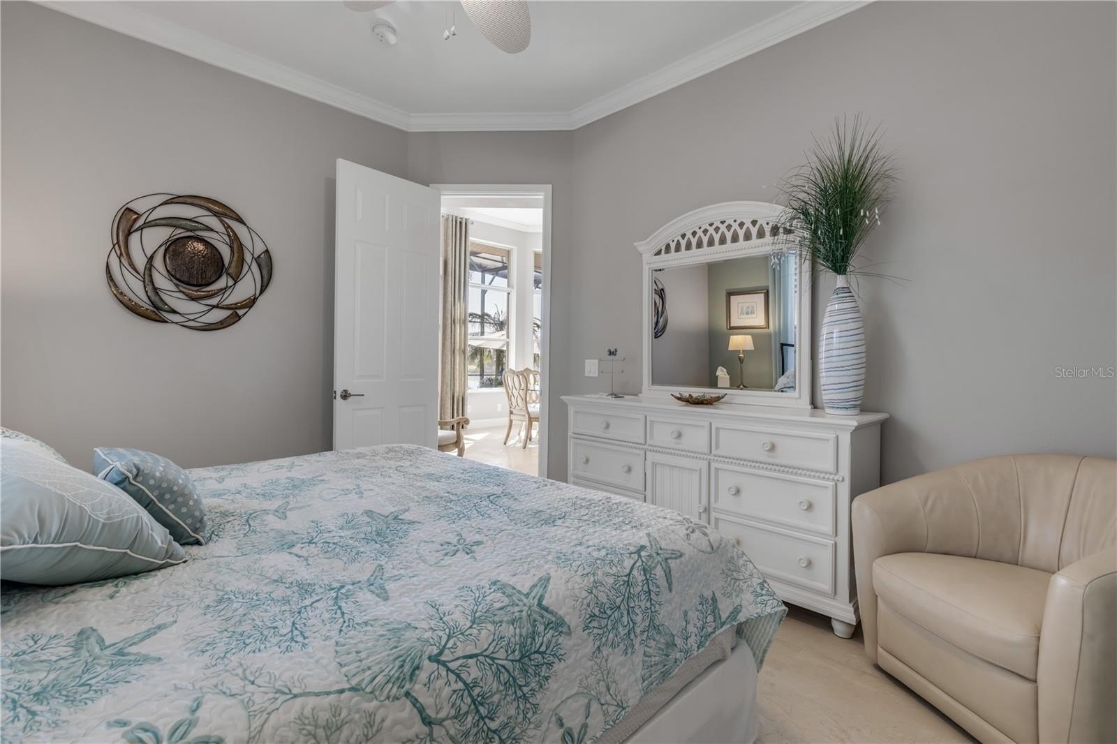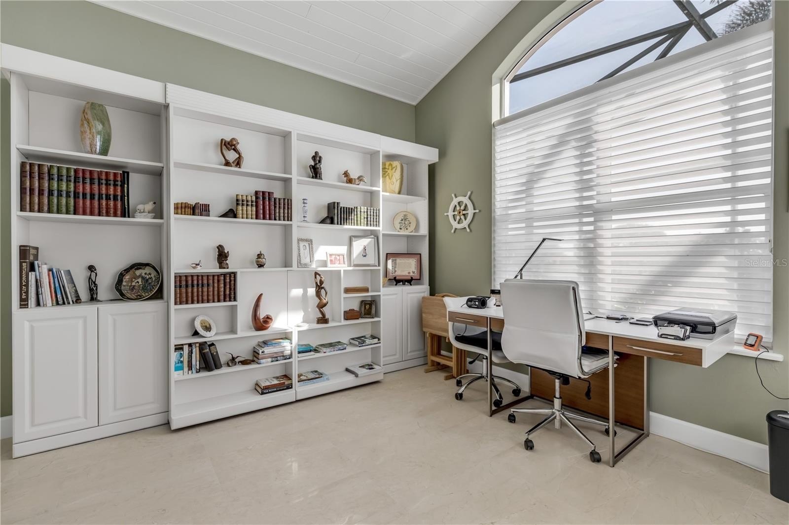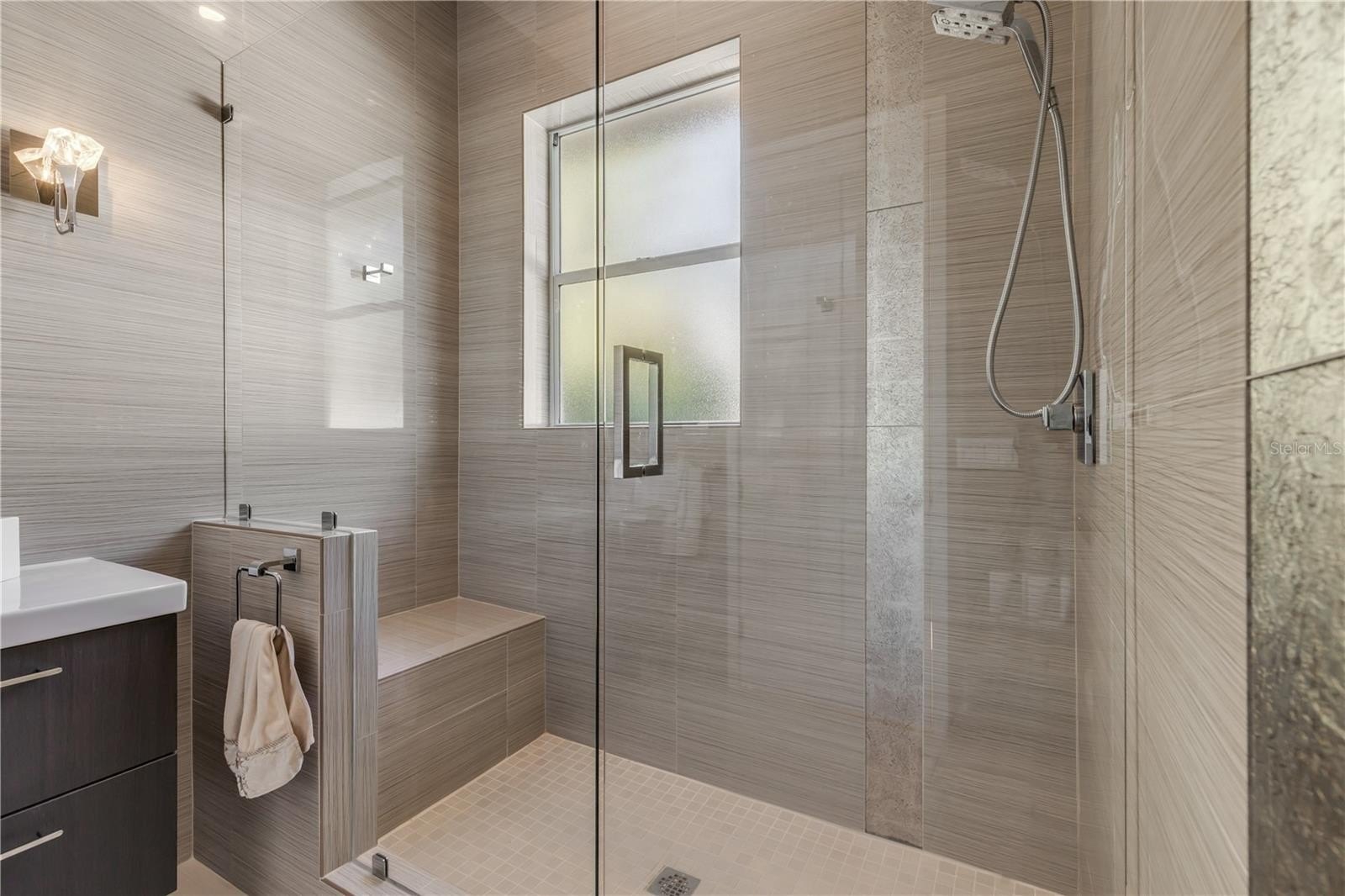 From the moment you arrive, the sense of scale is undeniable. Twin glass entry doors open to soaring 12-foot ceilings, custom tile inlays, and curated designer lighting — establishing an immediate tone of elegance and craftsmanship. The expansive great room is bathed in natural light through dramatic floor-to-ceiling windows, framing serene views of the private pool and waterfront beyond. An 80-inch recessed Modern Flames fireplace anchors the space, enhanced by integrated LED and precision downlighting. The open-concept layout transitions effortlessly into the gourmet kitchen and outdoor living areas — ideal for entertaining on any scale. German-Engineered Culinary Design - The chef’s kitchen is a masterclass in modern European craftsmanship, featuring: Custom SieMatic cabinetry in high-gloss and wood-grain finishes; Premium Miele appliances including steam, speed, and multifunction ovens; Concealed refrigerator/freezer; Induction cooktop and wine storage; Quartz waterfall island with breakfast seating; Granite sink and statement LED pendant lighting. This is not simply a kitchen — it is a culinary gallery. Private Owner’s Retreat - The primary suite offers lanai access and tranquil water views, accompanied by dual walk-in closets and a vaulted dressing or fitness space. The spa-inspired bath showcases frameless glass showers, rain heads, LED mirrors, and designer finishes — delivering a true resort experience at home. Guest accommodations reflect equal attention to detail, with fully tiled baths, sleek vanities, and contemporary glass accents. Resort-Style Outdoor Living - Step onto a travertine lanai designed for year-round enjoyment. The heated pool and spa feature: Sundeck and waterfall elements; Bubbler jet features;