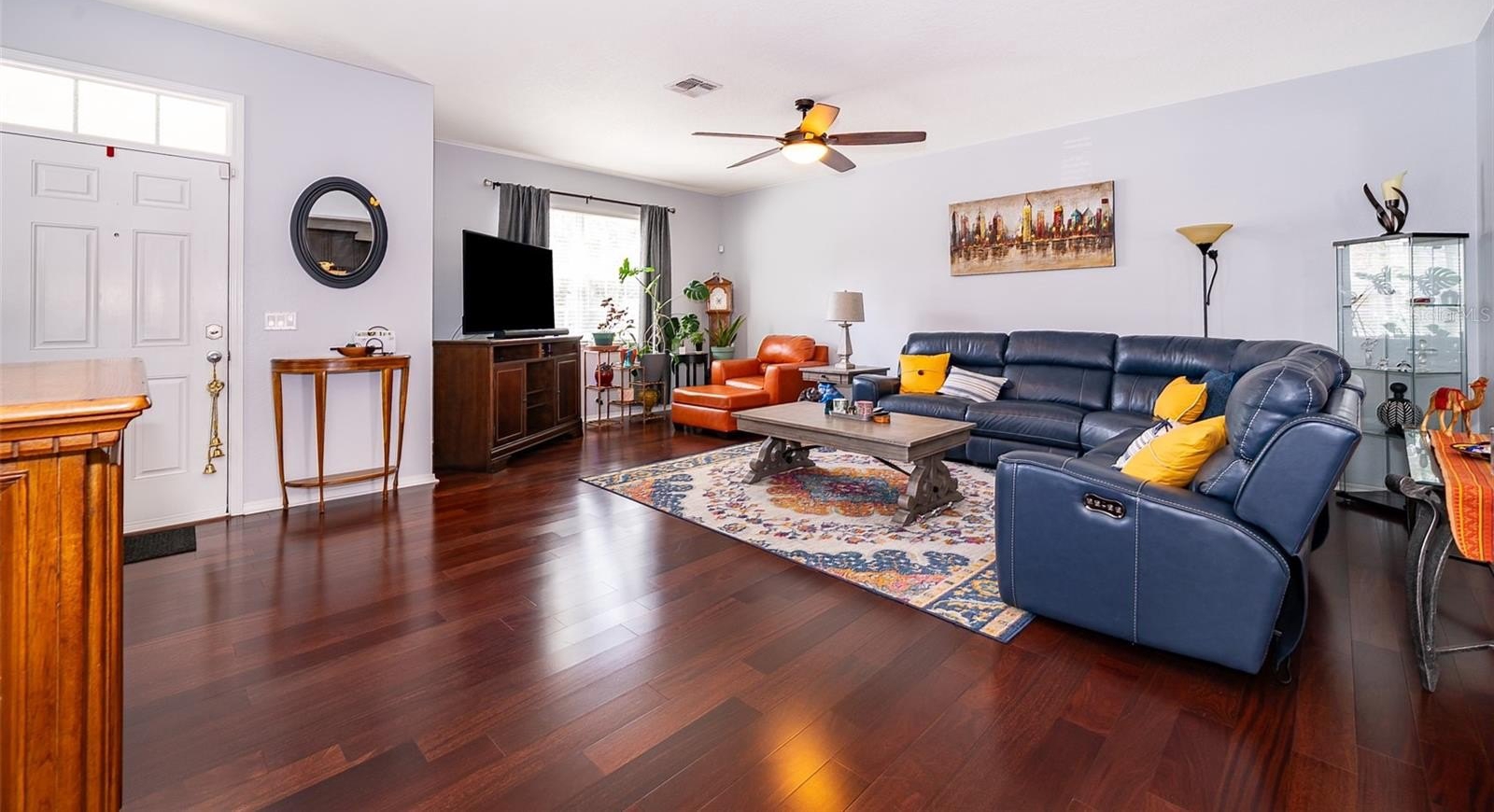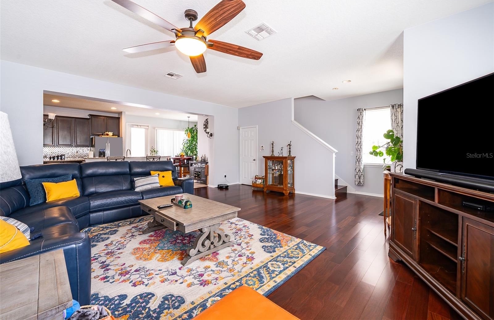 relaxing and entertaining. Fresh paint throughout gives the home a bright, inviting feel, while new wood flooring upstairs adds a warm and
