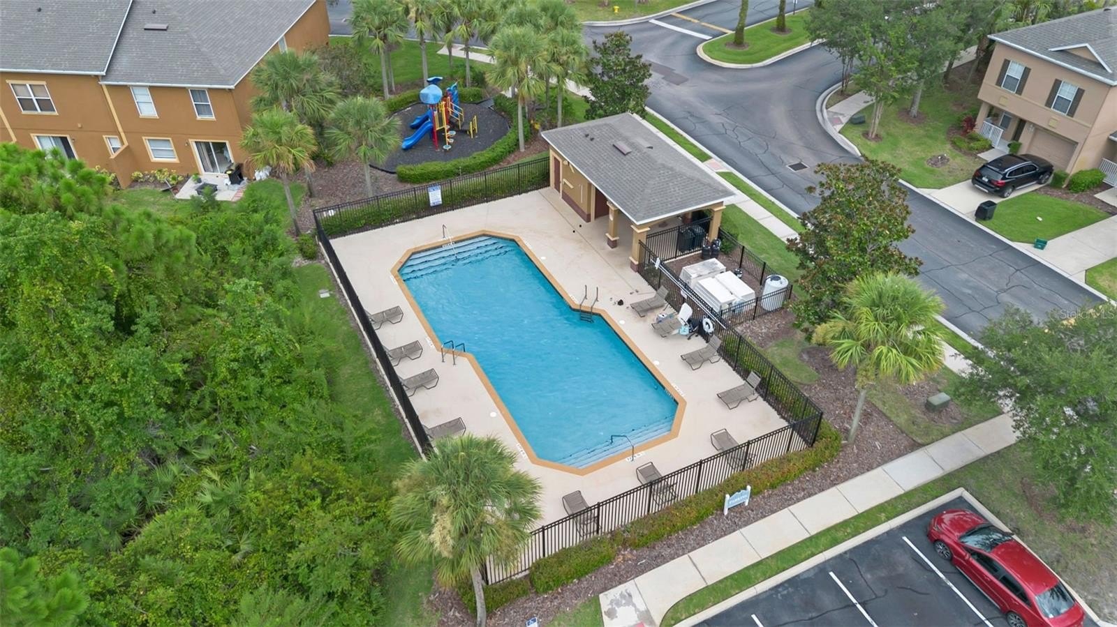 The well-maintained community features a dog park, a children's playground, and a pristine private pool for cooling off during the hot summer months.